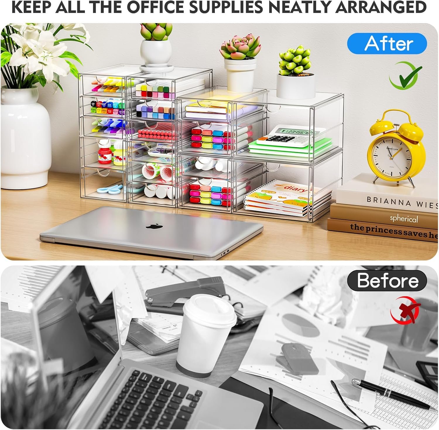 Versatile Organizers: Our acrylic organizers help you to organize everywhere in your home. They can be used as organizers and storage for makeup organizer, desk organizer, office organizer, bathroom countertop organizer, kitchen organizer, or laundry under sink organizer, medicine cabinet, pantry, vanity. Desk organizer with drawers are versatile enough to serve as storage solutions for skincare, perfume, lipstick, blush, foundation, pencil, various beads, Lego,tape, washi tape, glue, sunglasses, hair accessories, jewelry, souvenirs.