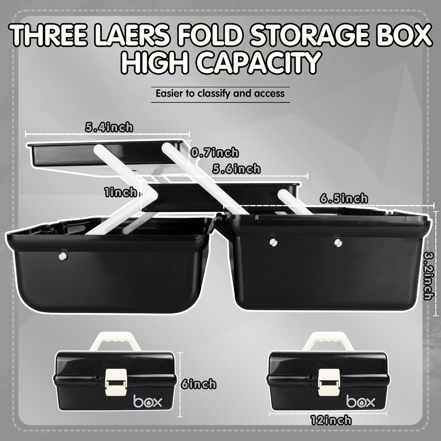 Enough Capacity: 12″ storage organizer box size: 12″ x 7″ x 6″, build in 3 layers with 2 trays, each tray also has compartments, which perfectly help to arrange items and this zone is enough to orderly store kids toys DIY crafts, sewing staffs etc.