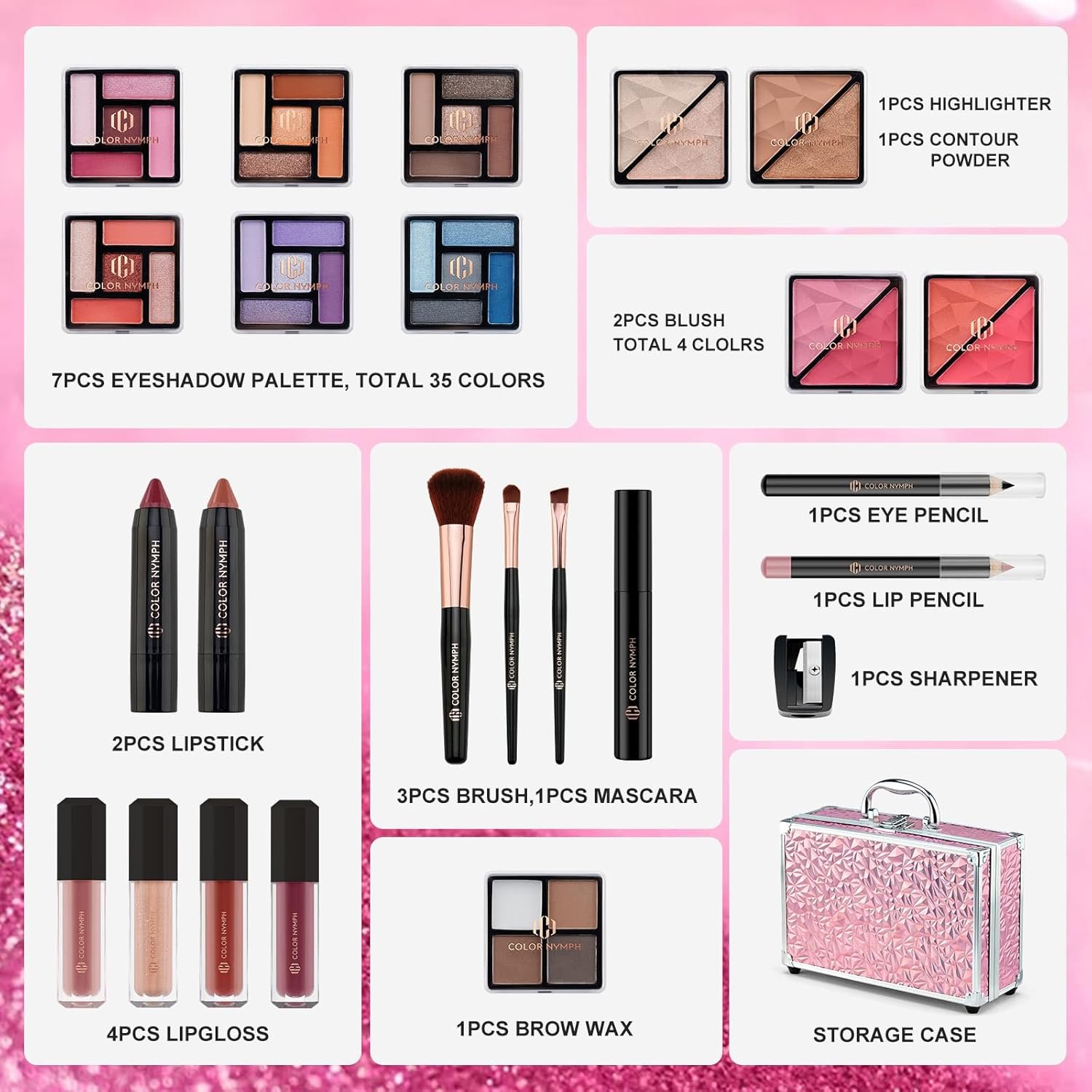 Full Makeup Kits, Complete Coverage Almost: Makeup set for girls offers a range of colors and finishes to suit different skin tones and preferences, allowing users to create a variety of looks. And The makeup kit for teen would cover all the essential makeup categories such as foundation, blush, eyeshadow, mascara, eyeliner, lipstick, and more. Considering that carry around and to keep makeup kits organized, Color Nymph beginner makeup kit comes with a train case for travel storage.