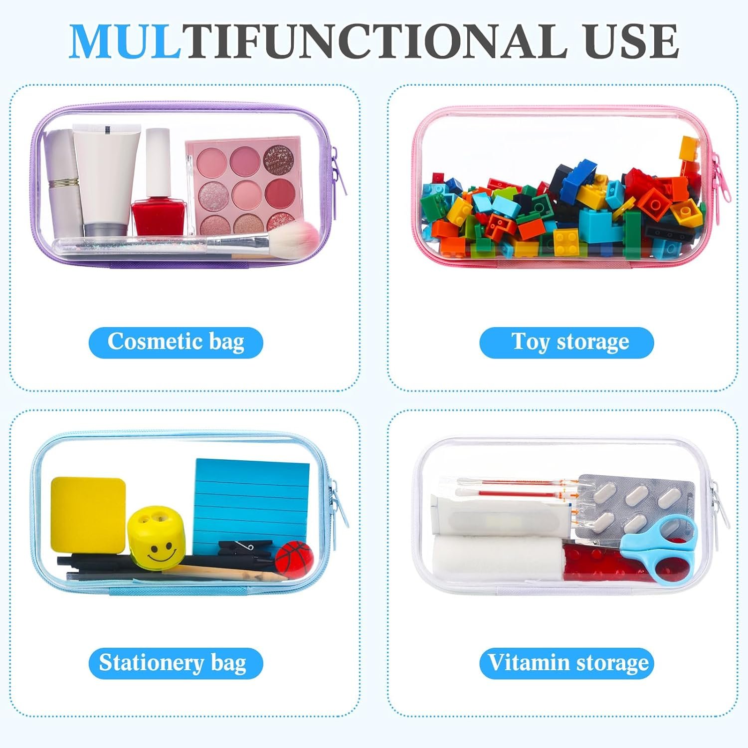 Durable PVC Material: crafted from 0.8 mm thick PVC material, these hard plastic zipper cases are designed for durability and resilience; The robust construction withstands daily wear and tear, protecting your items while maintaining a sleek and clear appearance; Featuring a smooth double zipper design, these cases open and close effortlessly