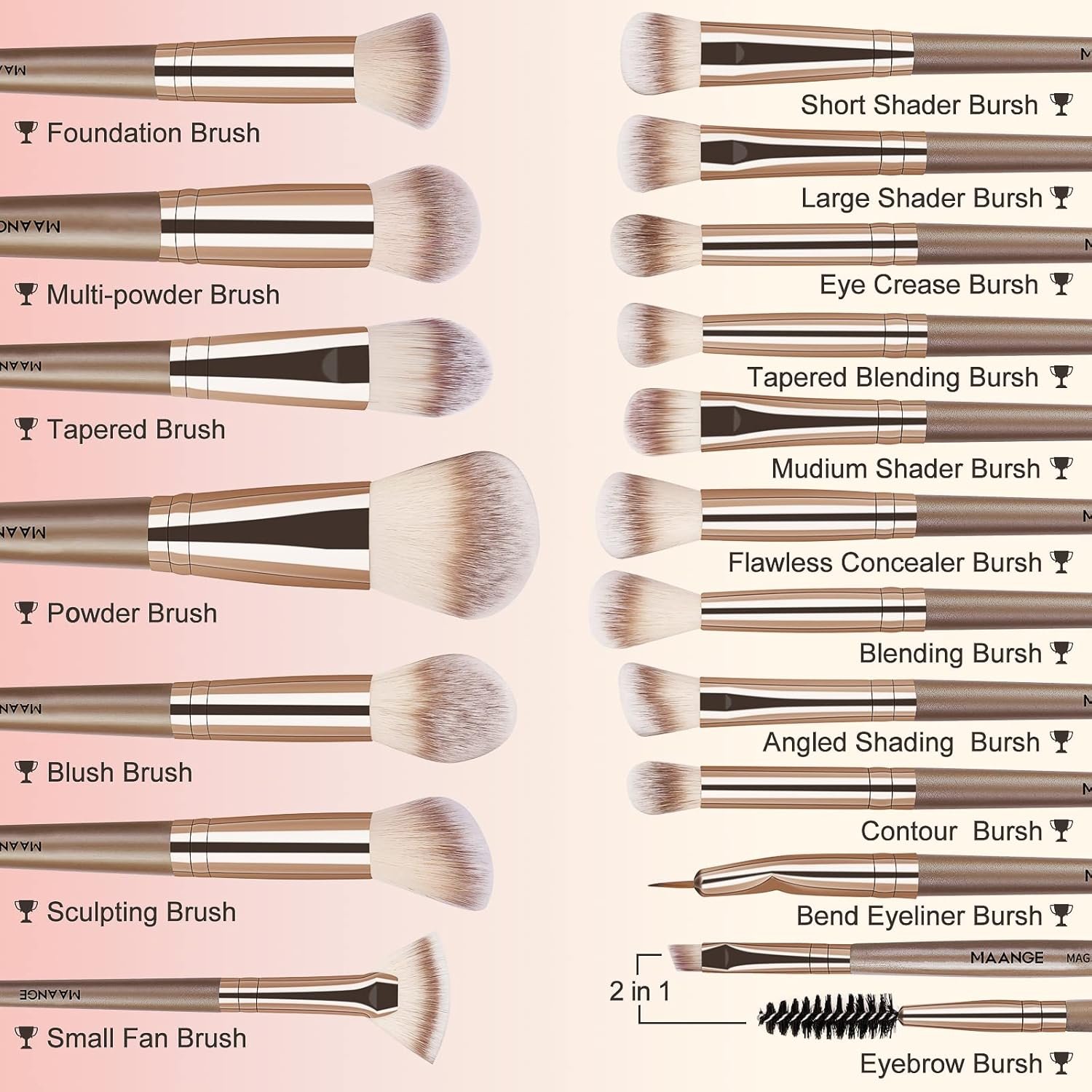 Great GIFT:Are you still worried about not knowing what gift to give? If your friends, family members like makeup or want to learn makeup, makeup brushes will be the best choice. MAANGE makeup brushes set professional is functional, elegant and cover the basic brushes you need for makeup brushes.