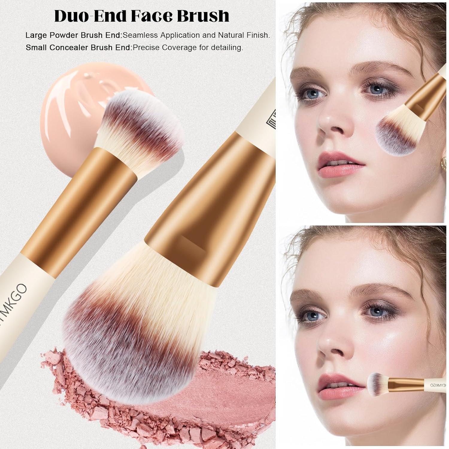 DUAL-ENDED MAKEUP BRUSH SET – The HEYMKGO makeup brush set includes 4 dual-ended brushes, offering 8 essential heads for Foundation, Powder, Blush, Contour, Concealer, Eyeshadow and more. Perfect for applying, blending, and shading, versatile enough for everyday, professional or evening makeup. Packaged in a convenient paper box, brush sets are your ideal travel companion, allowing you to touch up your makeup anytime, anywhere.