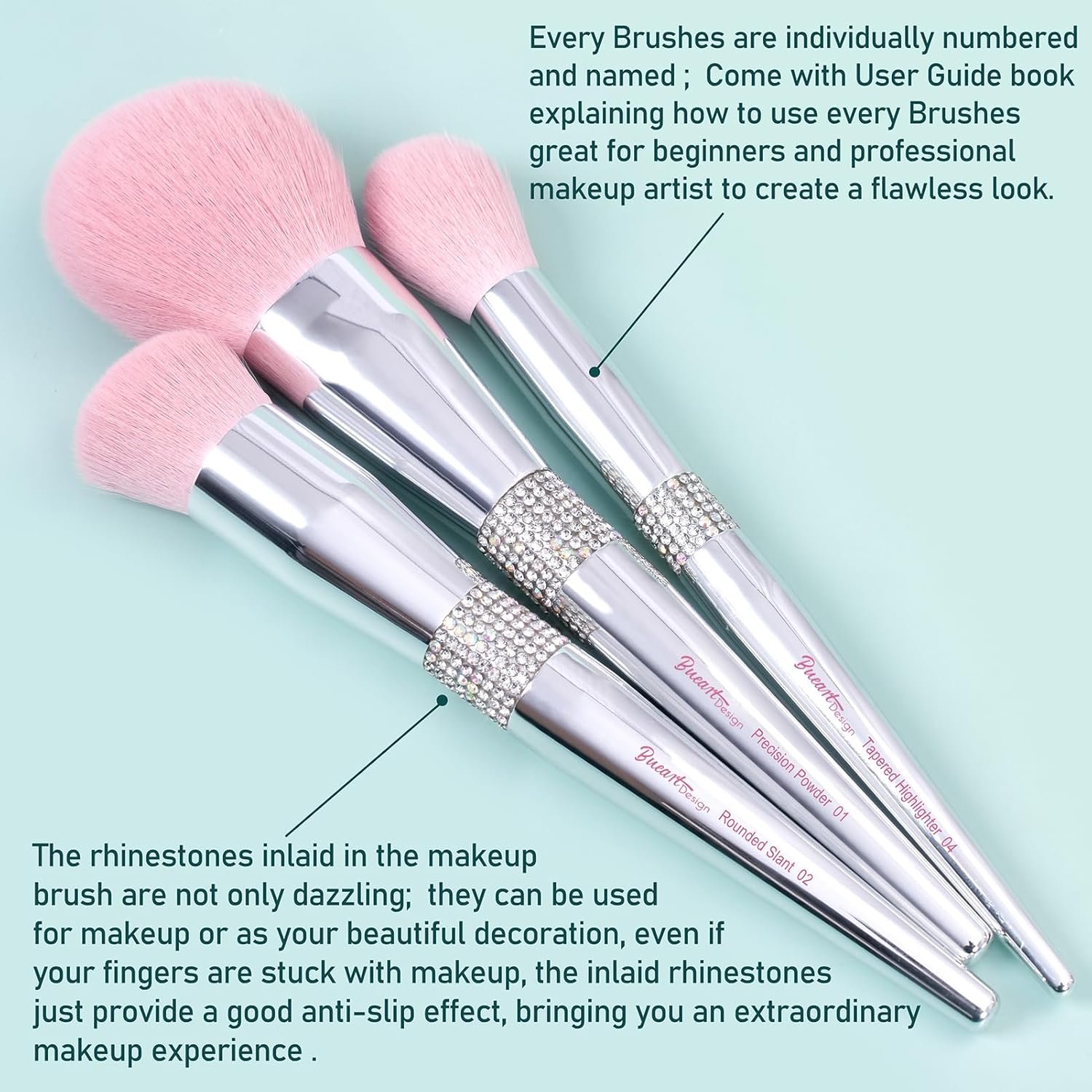 Customers find these makeup brushes well-manufactured and super soft, with one noting they’re firm enough for precise application. They are shiny, come in a stunning carrying case, and offer great value for the price. Customers praise their flawless application, with one mentioning how well they blend makeup, and appreciate the variety of brush shapes and sizes.