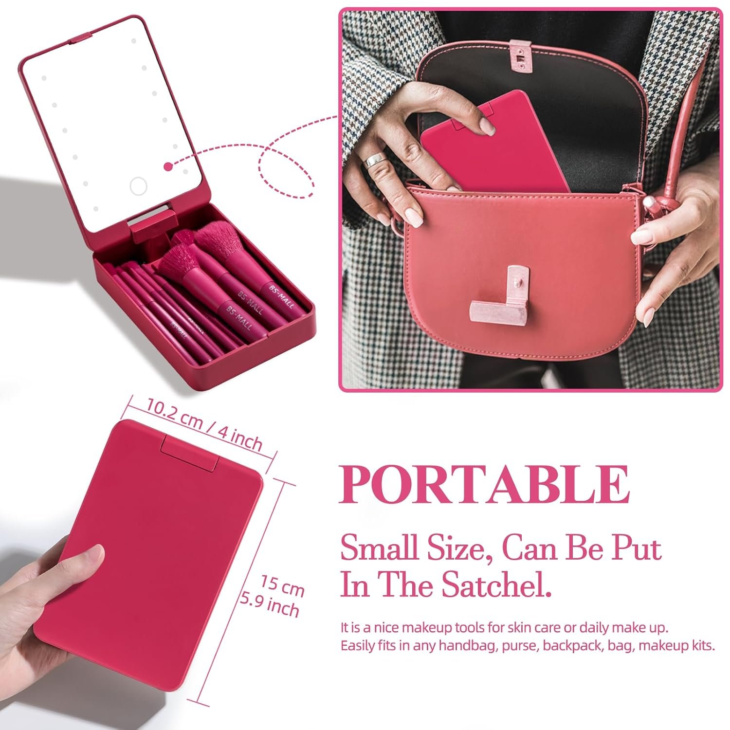 Customers find the makeup brush set to be of nice quality and appreciate its convenient size, with one noting it’s surprisingly good for its size. The set is particularly praised for its travel value, being easy to take anywhere, and customers like its soft brushes and cute appearance. The brightness receives mixed feedback – while some find the light very bright, others say it makes it hard to see themselves. Customers report durability issues with the mirror breaking in first use and functionality problems with the light not working at all.