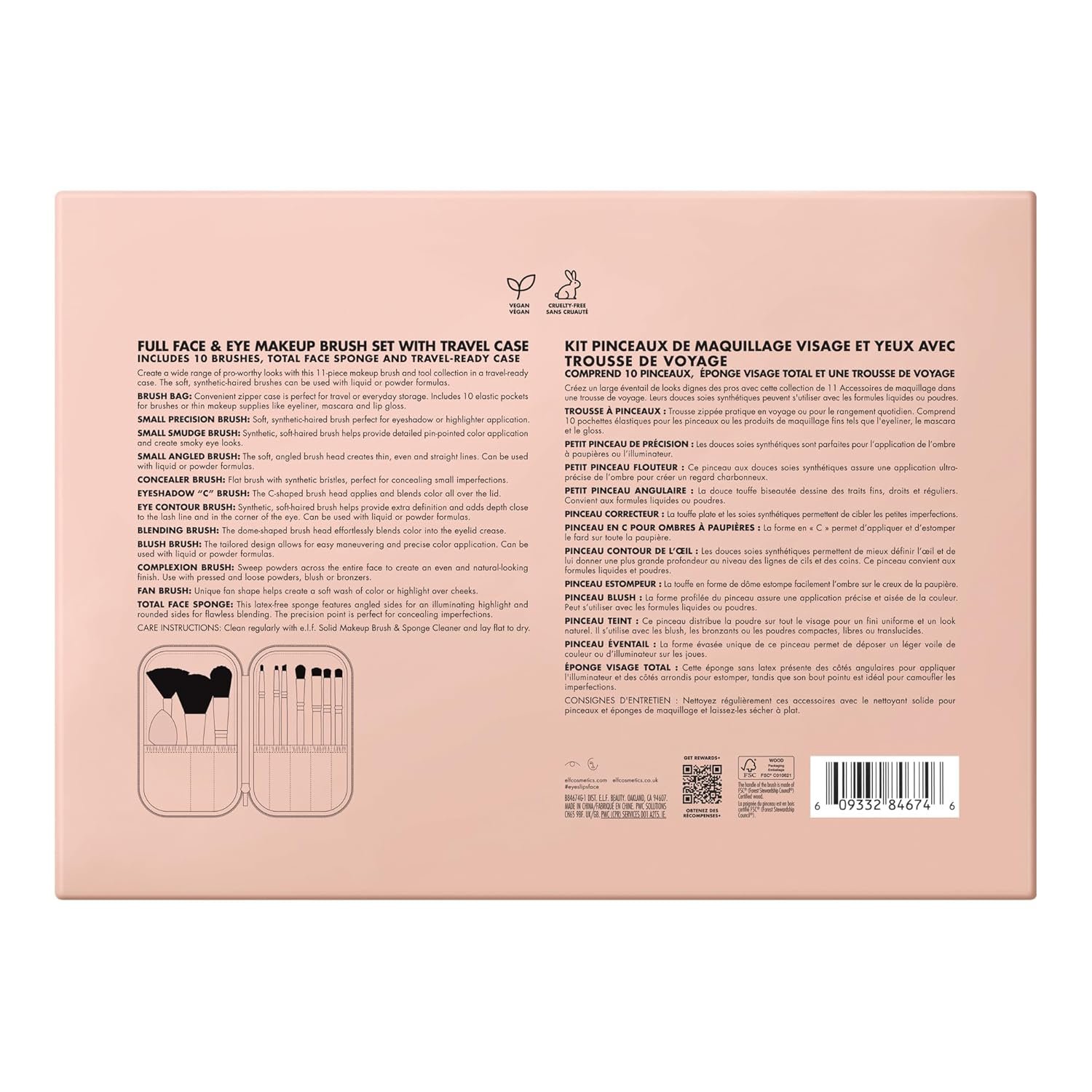 FULL FACE MAKEUP BRUSH SET: Achieve an e.l.f.ing gorgeous beat every time with this complete makeup brush set and chic travel case.