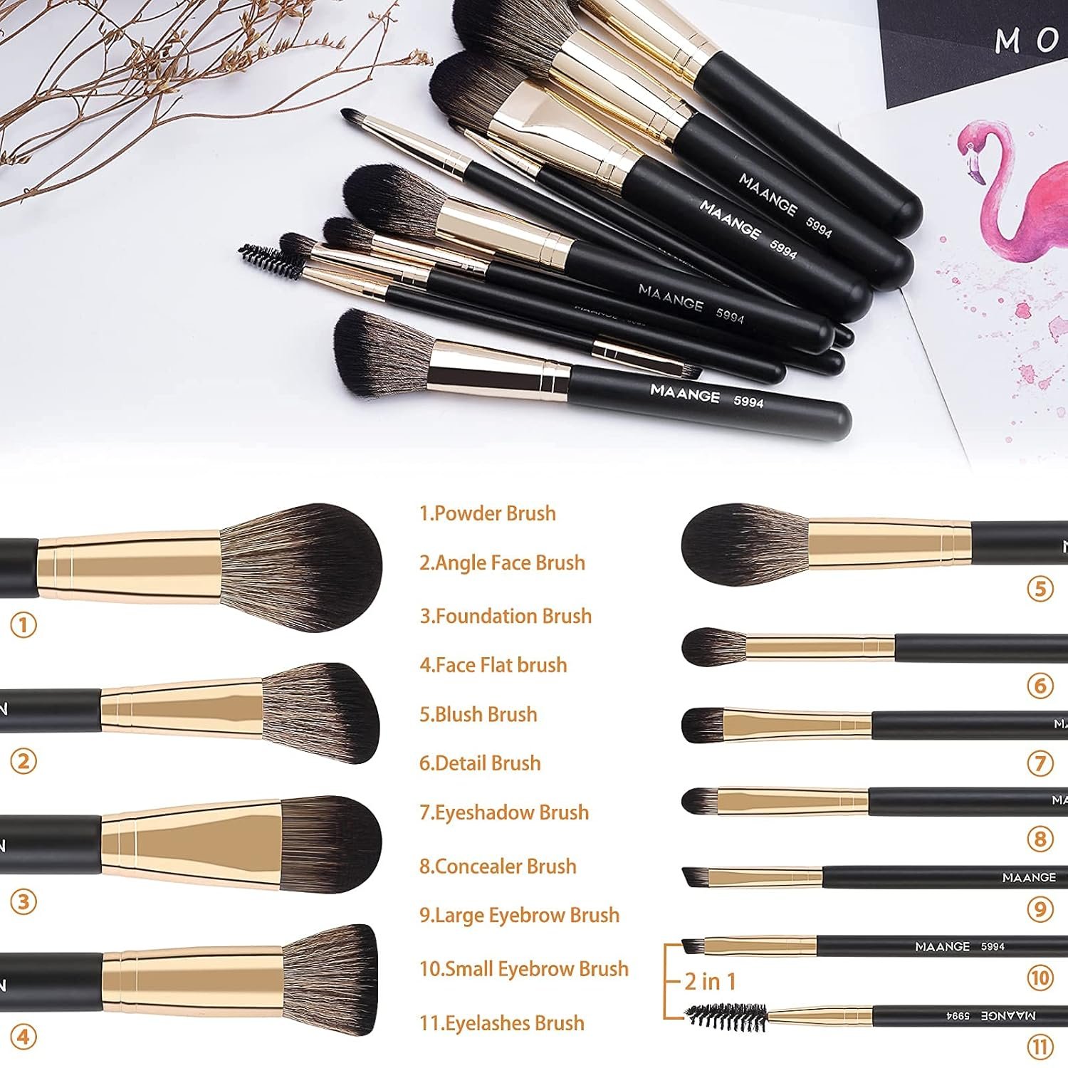 MAANGE UPGRADE MAKEUP BRUSHES SET: Contains 10 basic makeup brushes for liquid foundation, eye shadow, concealer, etc. 1 makeup brush case, 1 makeup sponge and 1 Brush cleaner mat. A full set of makeup equipment, take care and storage of your make up brushes, save worry and effort, and Let each makeup brush give full play to its effect and not be left unused.