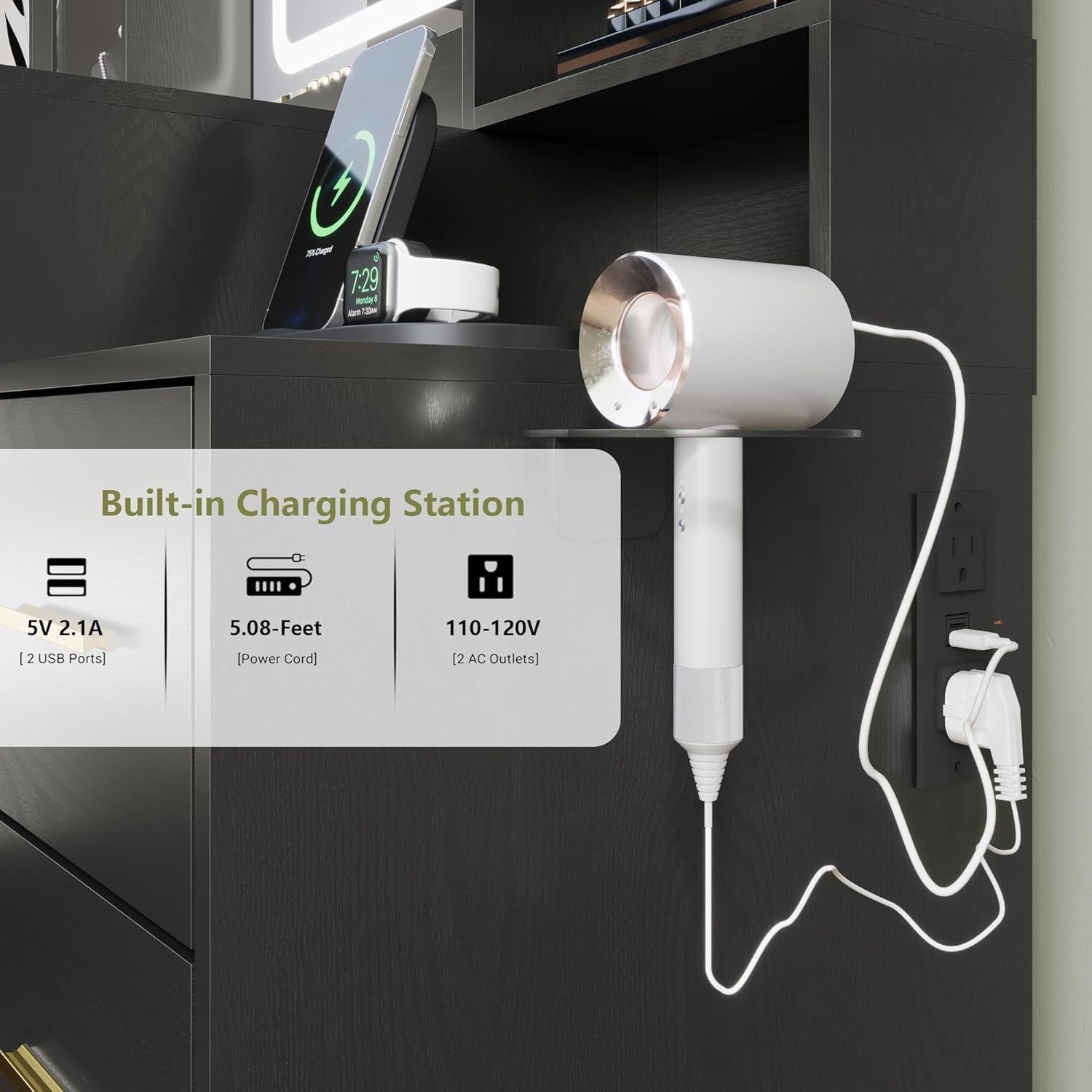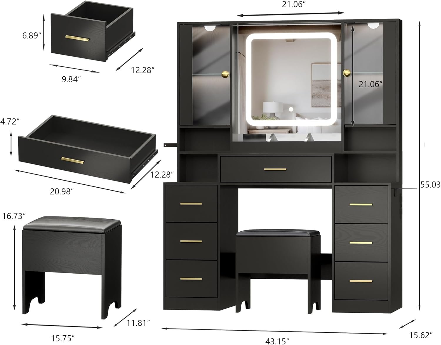 Elegant and Functional Design: The modern design of this black vanity blends style with practicality. It’s a perfect addition to any bedroom or dressing room, designed to serve as a vanity desk with mirror and lights. Ideal for women, teens, and anyone seeking a touch of sophistication in their space.