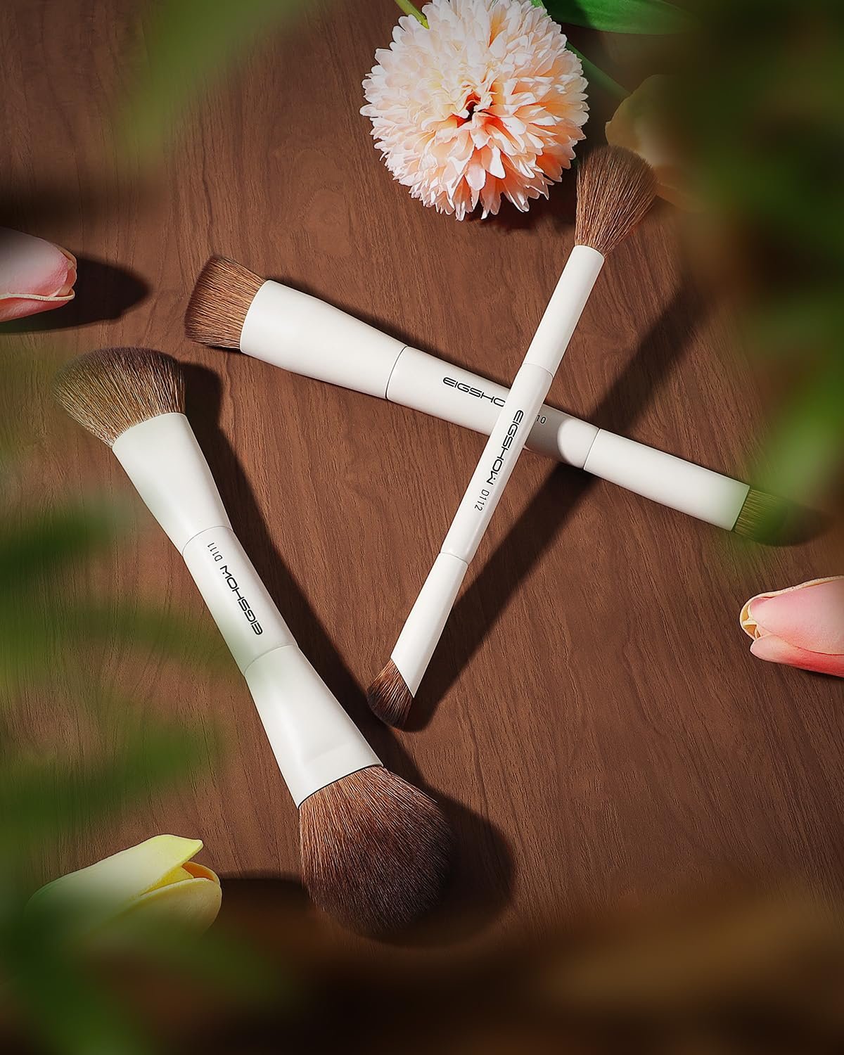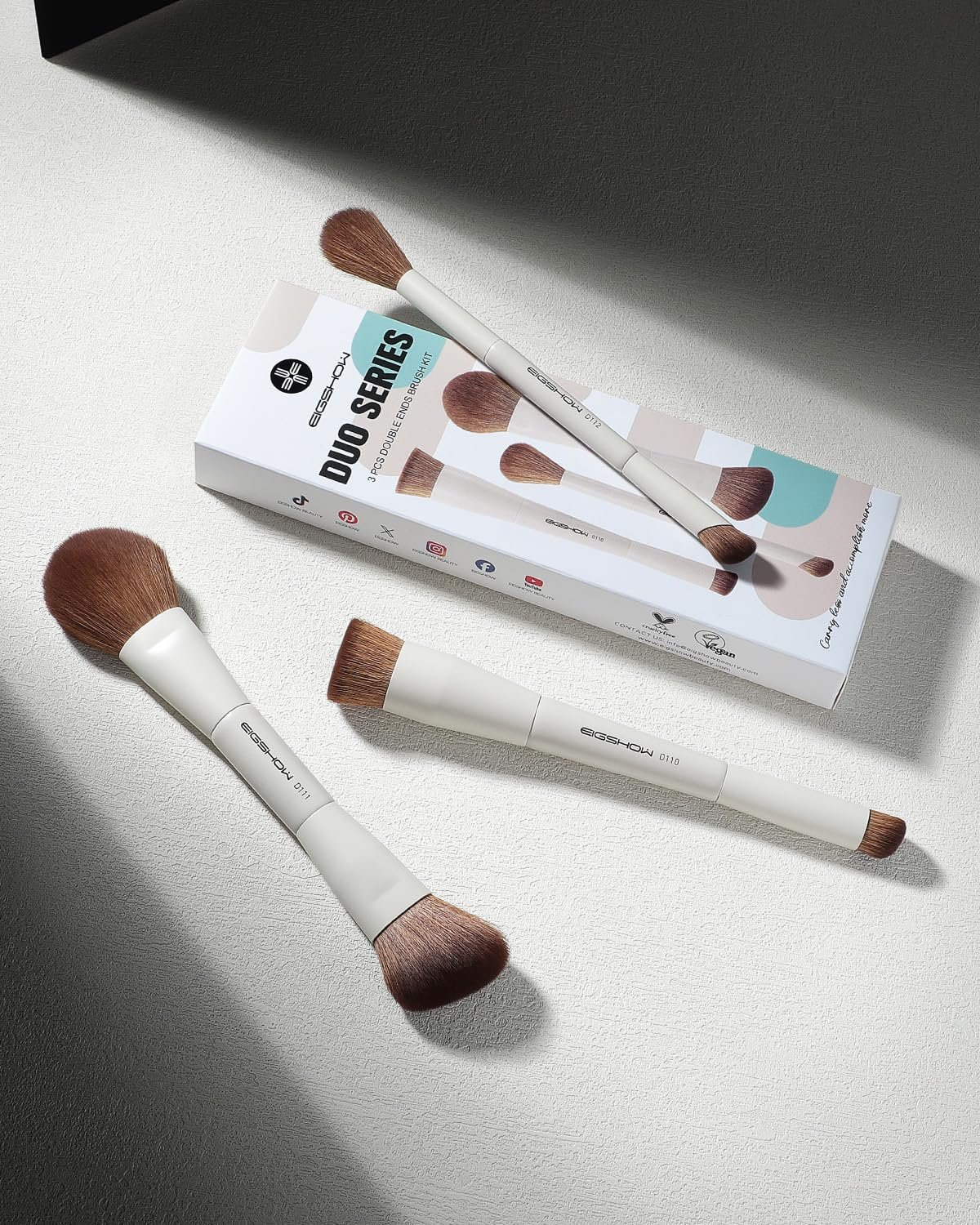 𝗬𝗼𝘂𝗿 𝗔𝗹𝗹-𝗶𝗻-𝗢𝗻𝗲 𝗠𝗮𝗸𝗲𝘂𝗽 𝗘𝘀𝘀𝗲𝗻𝘁𝗶𝗮𝗹: Three dual-ended brush set with 6 essential brush heads for foundation, powder, contour, concealer, highlight, and nose shadow. Designed for precision and seamless blending, they deliver professional results at every step.