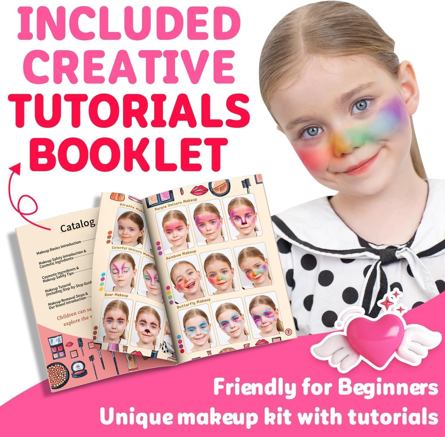 【Encourage Creativity & Entertainment】: Come with a makeup tutorial booklet. Play makeup can help child improve fine motor skill, with the little girl explore the beautiful endless possibilities meanwhile developing creativity and imagination. Provide family interactive and entertainment time that girl can pretend she’s putting on makeup like mommy.