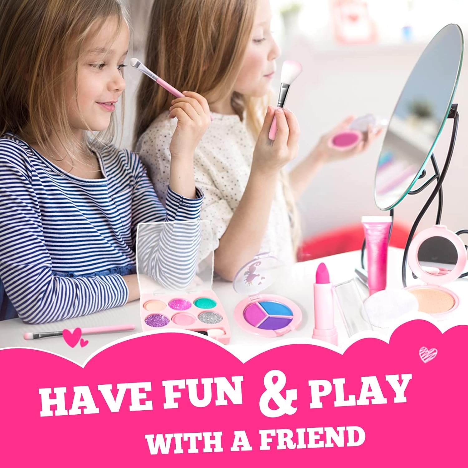 【Real Makeup & Washable】Each color is perfect for kids for pretty made-up look. Easy to clean and washable with water (and light soap as needed), no need special makeup remover.No more fear of carpet-stain or furniture-marks, let her play all she wants