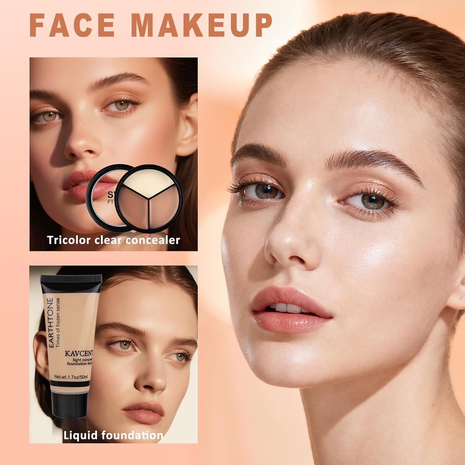 【All In One Makeup Kit】Makeup set that includes Makeup Palette, Eyeshadow Palette,Lip Gloss, Liquid Foundation,concealer, Mascara, Eyebrow Pencil, Eyeliner, Powder Puff, Makeup Brushes Set. Makeup kit for teens 14-16 makeup set for women makeup