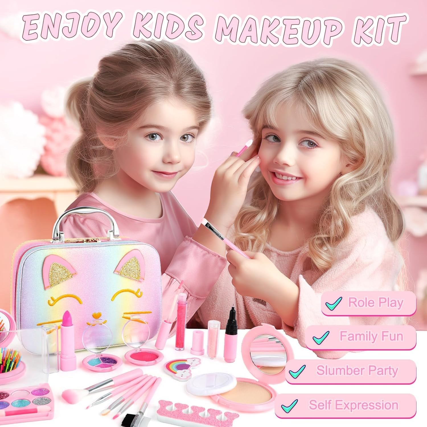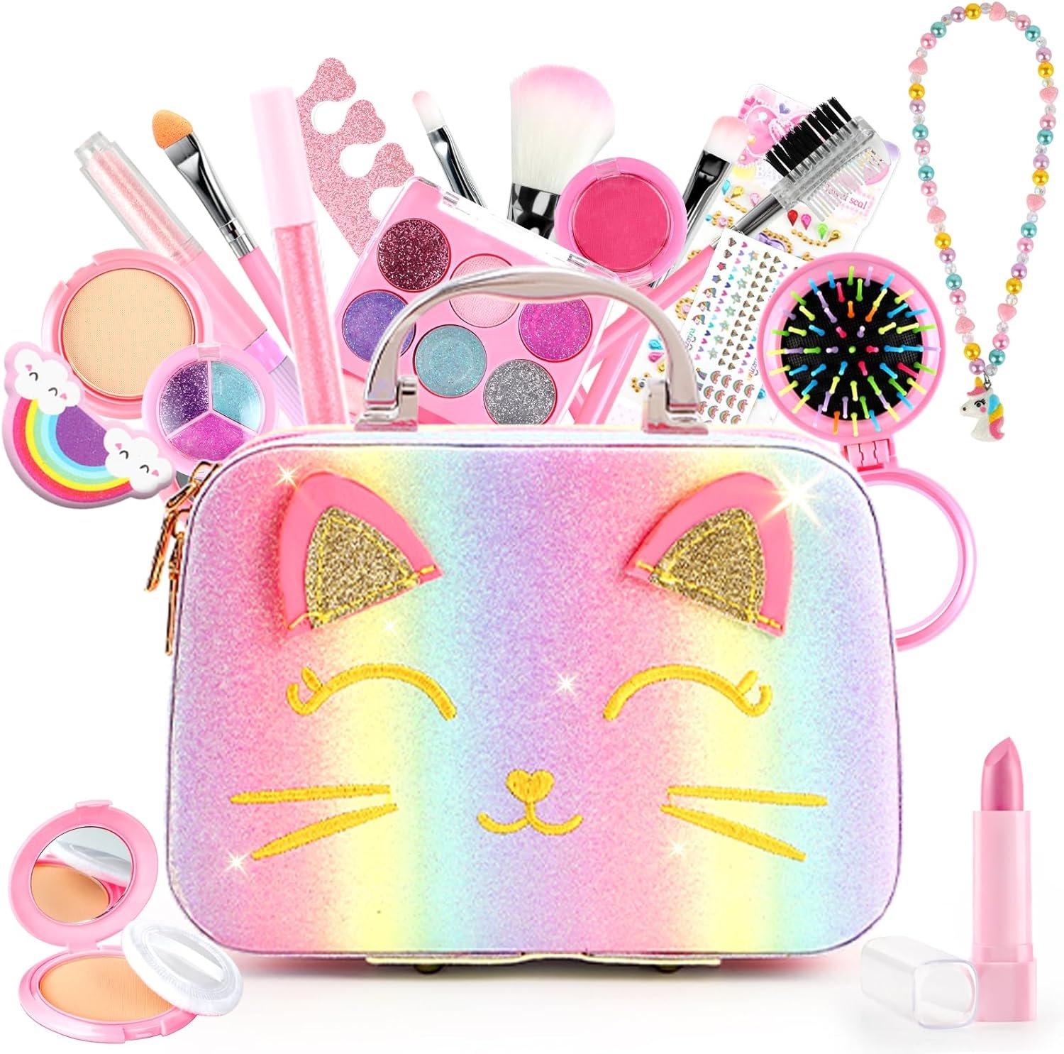 BEST VALUE GIFTS FOR GIRLS: Are you looking for a gift for your little girl?Look no further! The unique cat cosmetic box is very suitable as a princess gift for your kids at any time of the year, including but not limited to Birthday, Christmas, Halloween or other holidays.Buy the kids makeup kit toy for girls as a gift for your sweet princess age 3 4 5 6 7 8 9 10 11 12 year old and enjoy the wonderful parent-child time together!