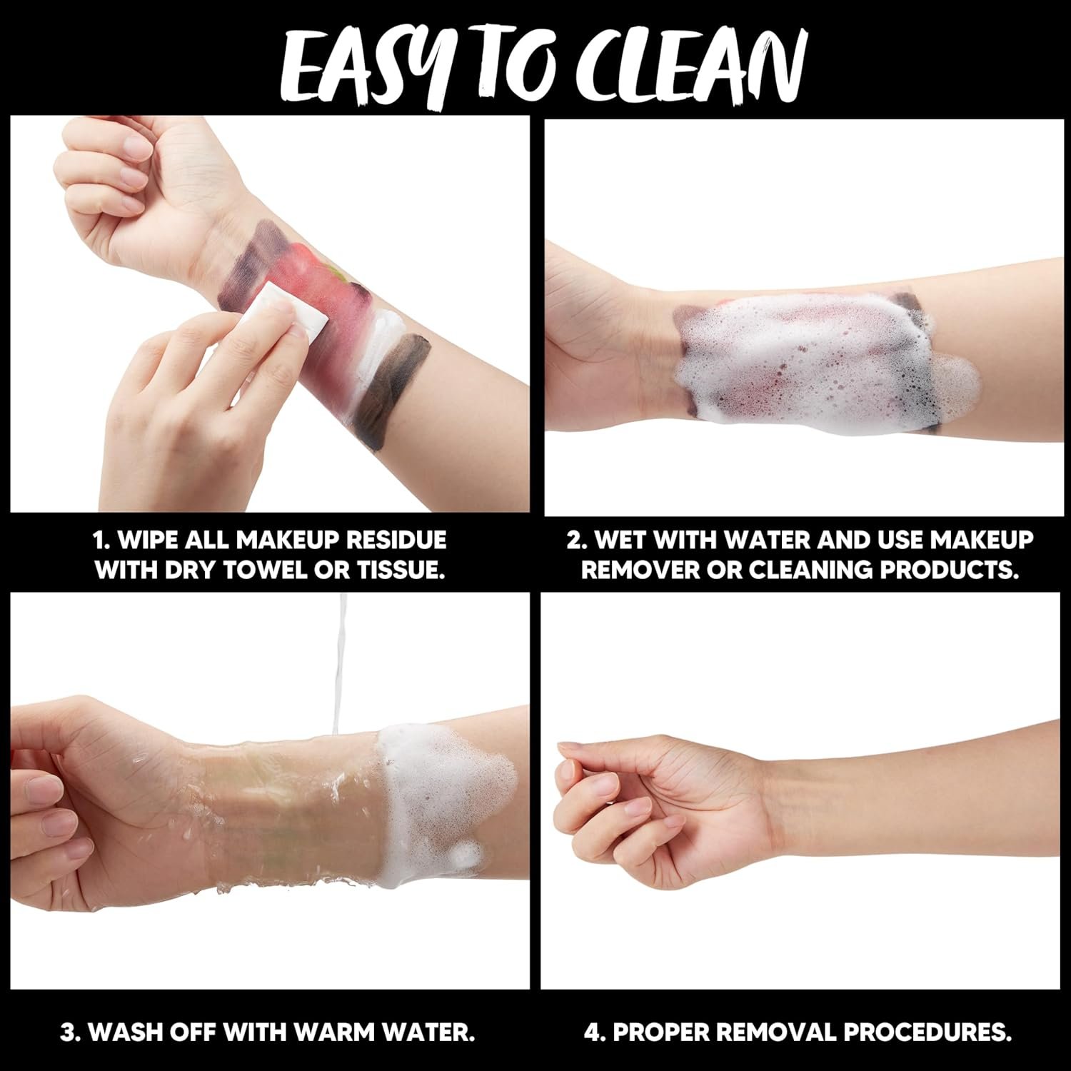 Suitable For Body And Face: This versatile kit is suitable for both body and face applications. Whether you want to create realistic wounds on your arms or transform your face into a spooky character. this kit offers the flexibility to bring your Halloween vision to life.The products are long-lasting. ensuring that your Halloween makeup stays intact throughout your festivities.