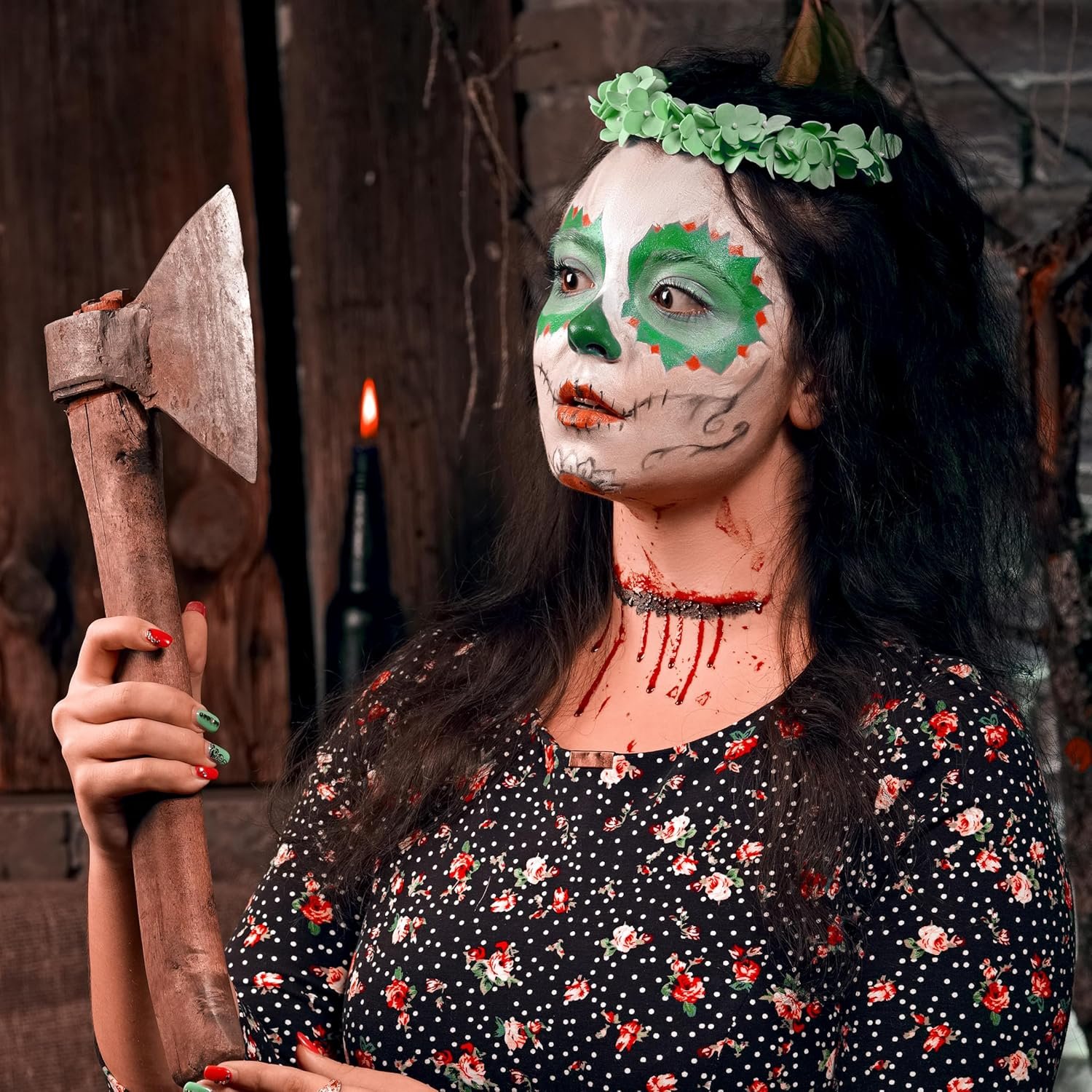 Halloween Makeup Kit: Our Halloween Makeup Kit is thoughtfully designed to meet your makeup needs. With a comprehensive range of materials and tools. including skin wax for creating wounds and scars. fake blood for gory effects. and a versatile color palette. this kit offers versatility and convenience for your Halloween makeup endeavors.