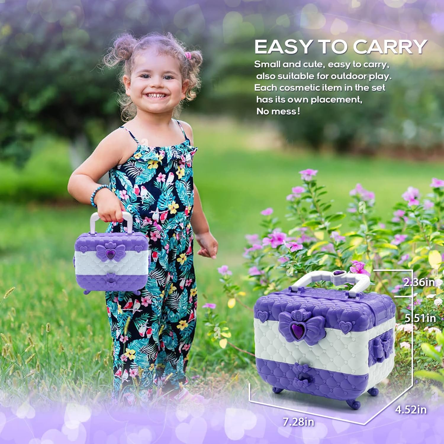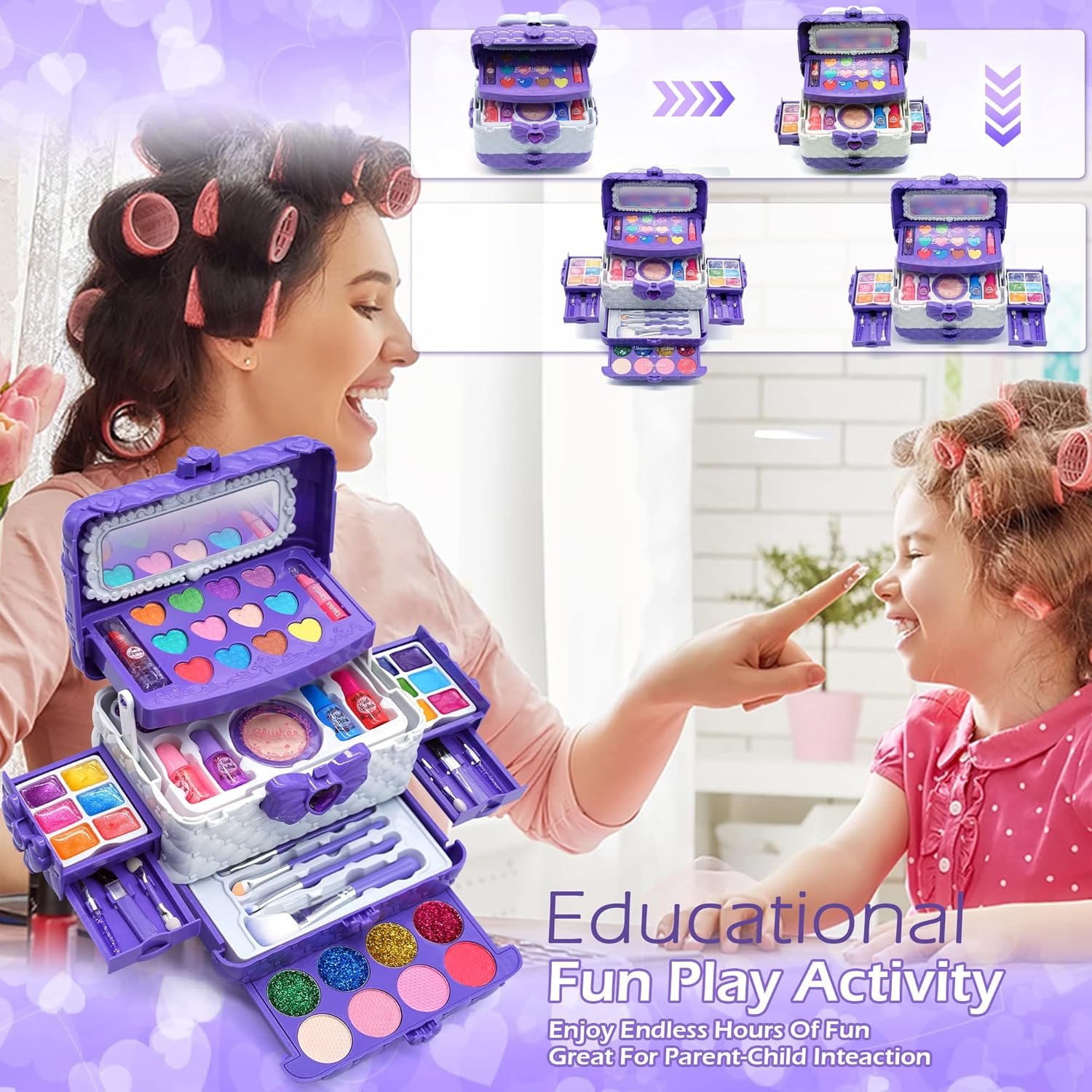 Kids Makeup Sets For Girls 57 PCS:2025 NEW(purple)This contain Kids Makeup Sets For Girls 3-4& accessories covering eye shadow, blush, lipstick, nail polish, foundation, makeup brush, nail file, nail separator, nail stickers, 4 eyeshadow and blush palettes with 32 colors, brush-makeup sponge-etc.kids makeup kit for toys for girls 4 5 6 7 8 9 10-12 year