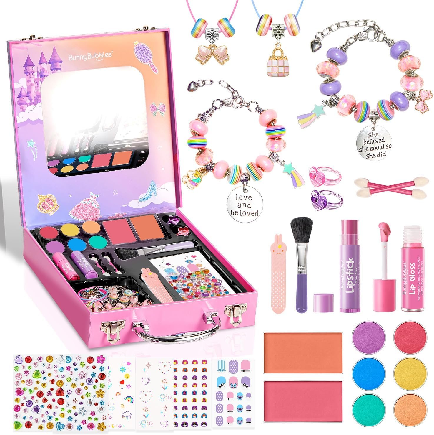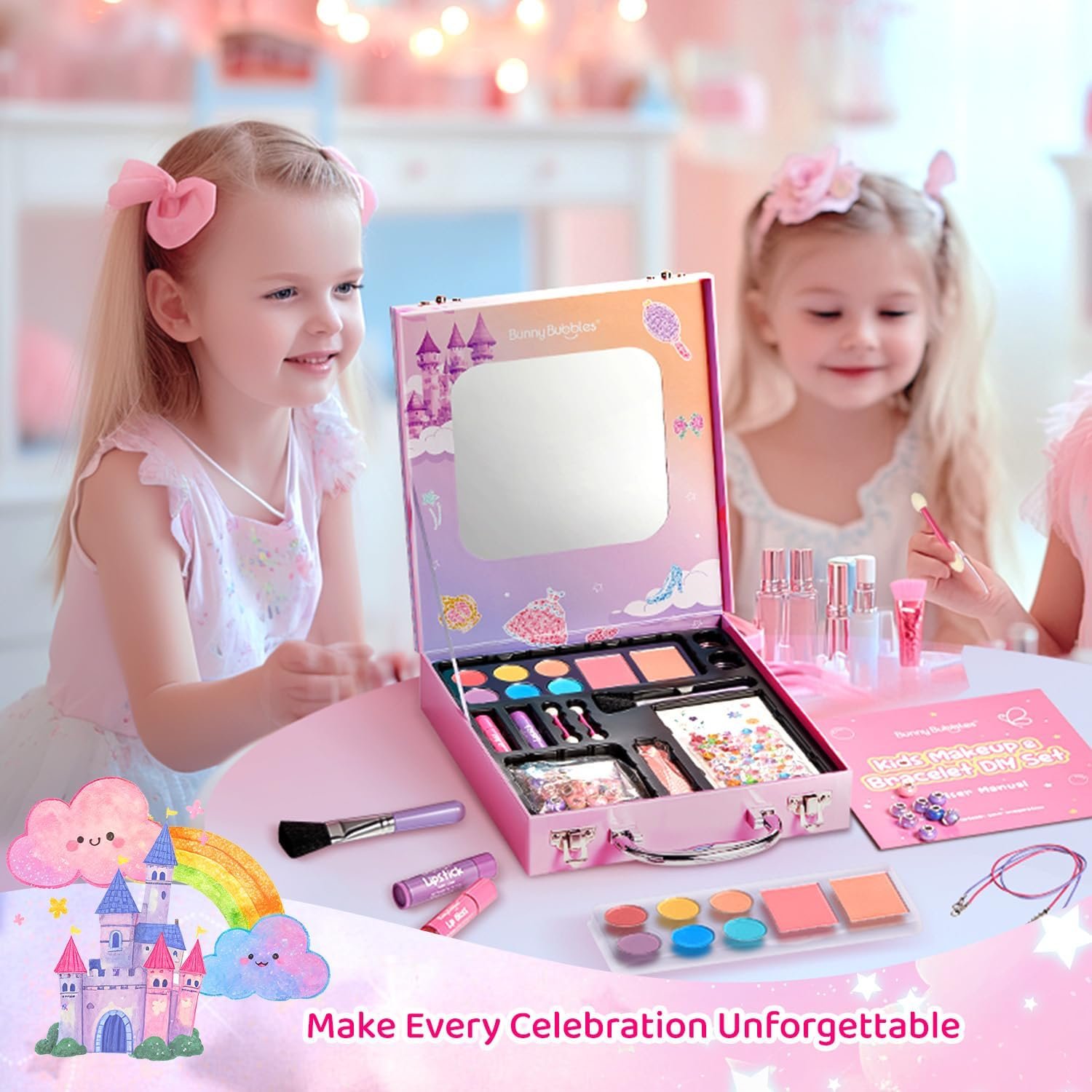Encourages Creativity with DIY Jewelry Kit: The included jewelry-making kit adds an extra layer of creativity, inspiring kids to design their own accessories. Both makeup play and jewelry crafting are great for developing fine motor skills and provide fun bonding moments as kids play just like grown-ups