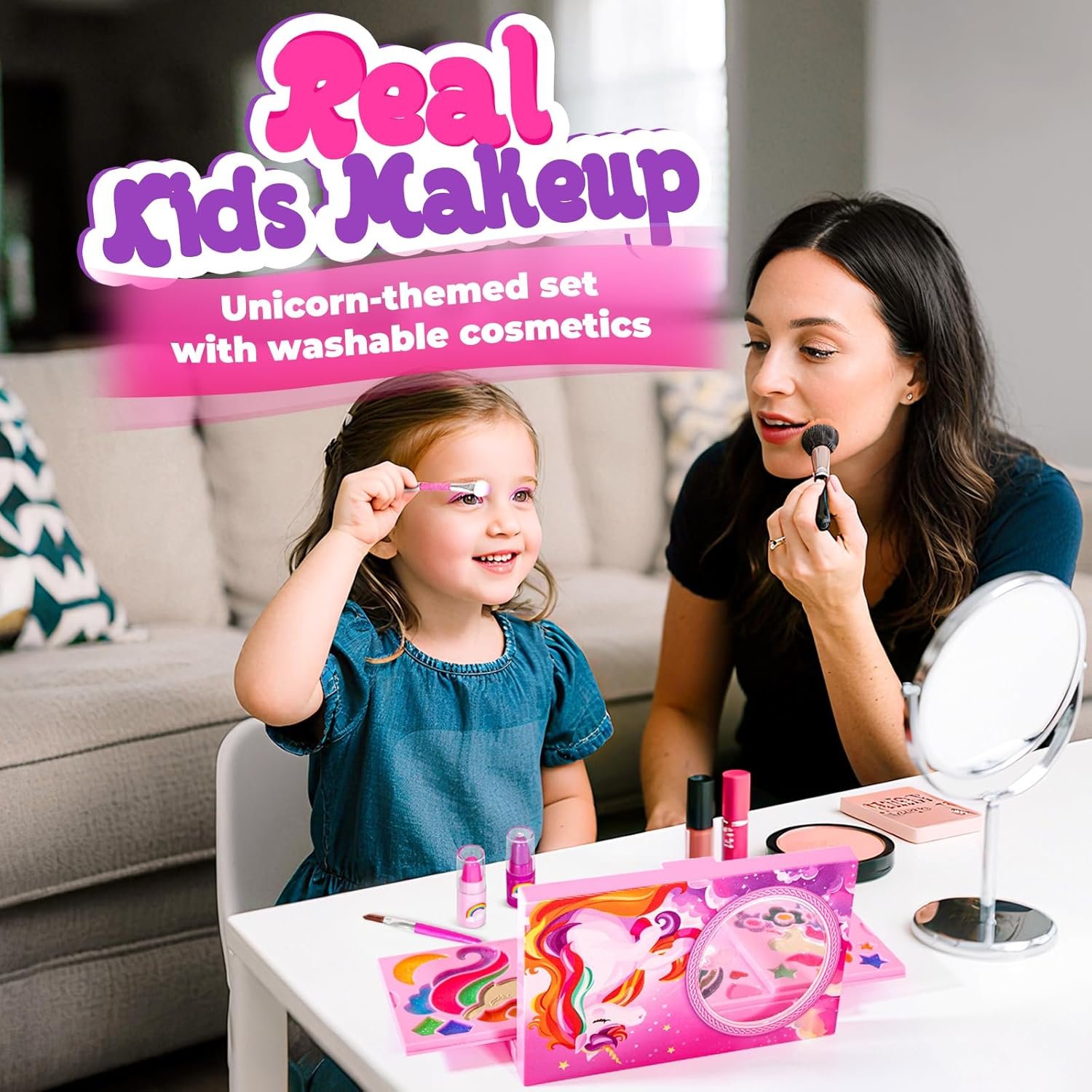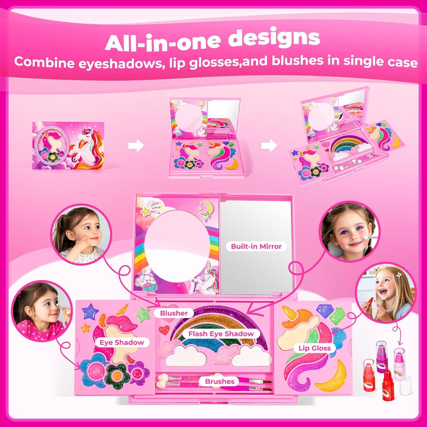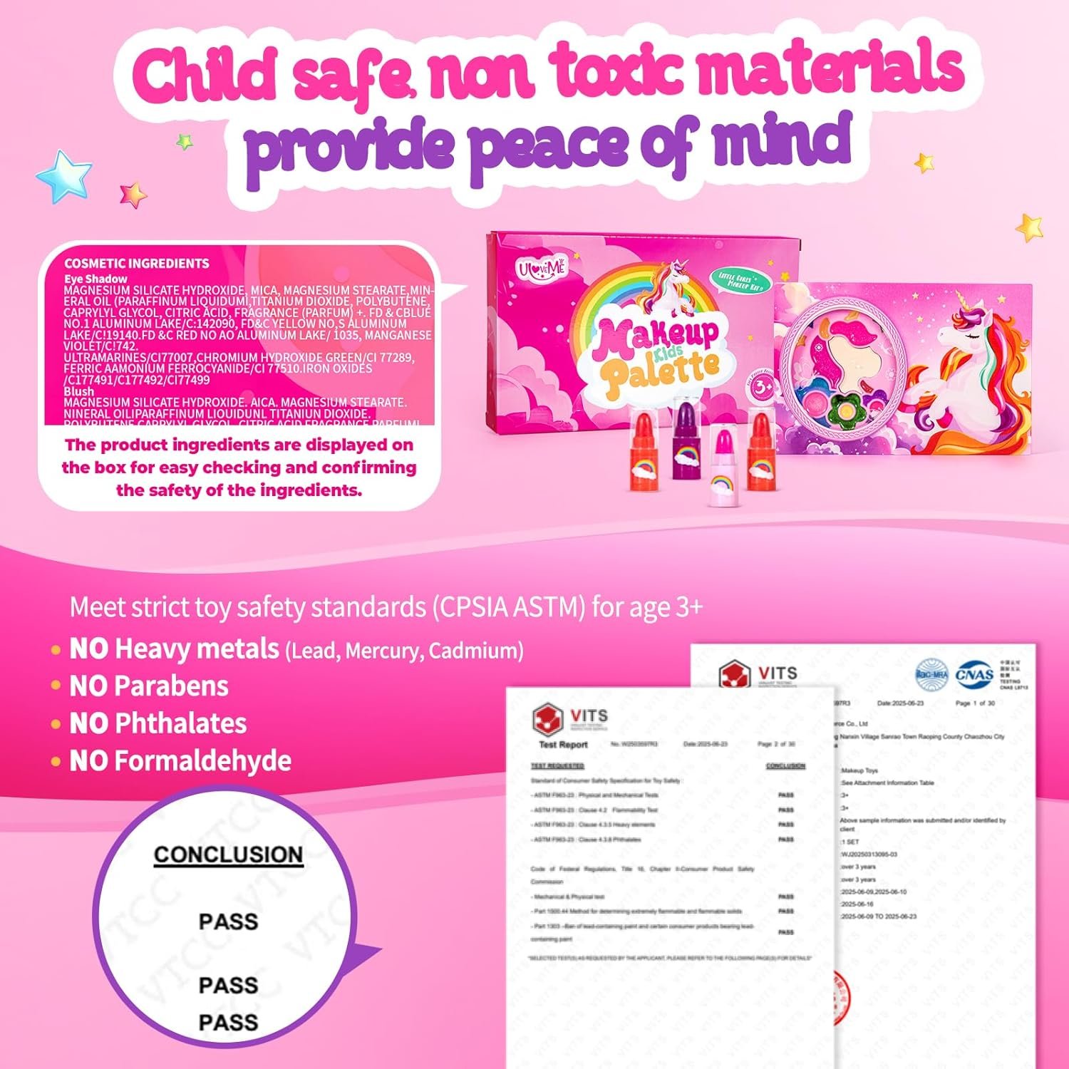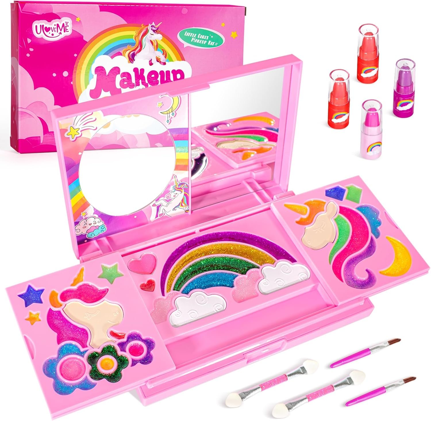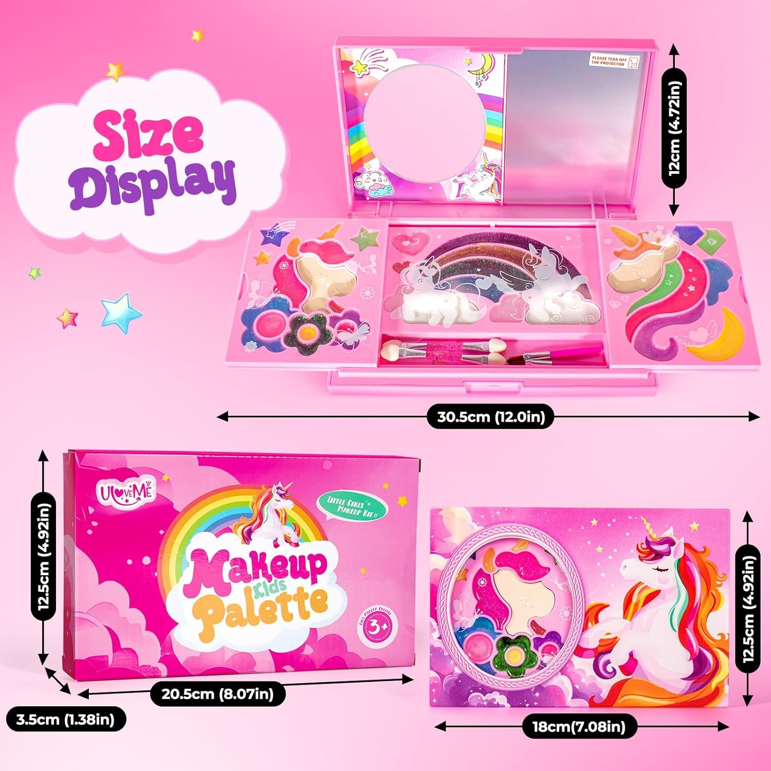 【Compact Size & Weight】ULOVEME unicorns girls makeup kit designed specifically for small hands and easy carrying. Makeup set is designed with portability in mind,making them excellent choices for vacations,playdates,sleepovers, or just everyday fun around thehouse