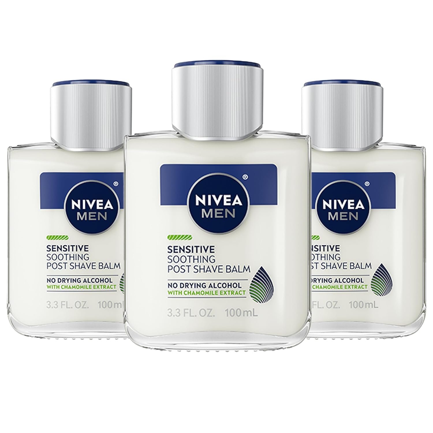 INCLUDES: Three 3.3 fluid ounce bottles of NIVEA MEN Sensitive Soothing Post Shave Balm