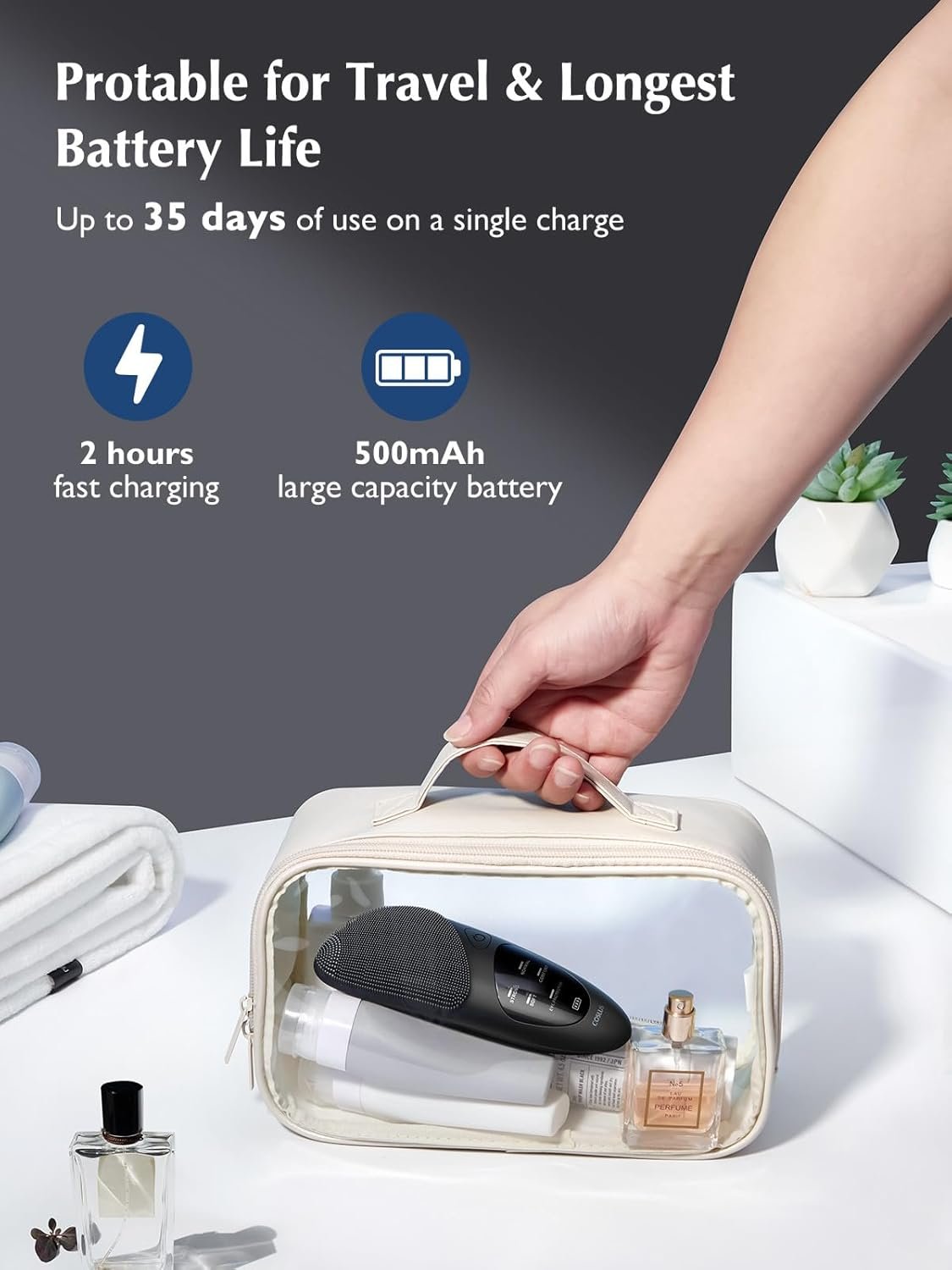 35 DAYS SUPER BATTERY LIFE: The silicone face scrubber has a built-in 500mAh large-capacity battery, which only takes 2 hours to fully charge and can be used continuously for more than 35 days. The facial brush is compact and comes with a storage box and storage bag, making it portable and easy to store at home, during your fitness routine, or while traveling. It’s also waterproof for shower use, so you can enjoy spa-grade facials at any time, wherever you go