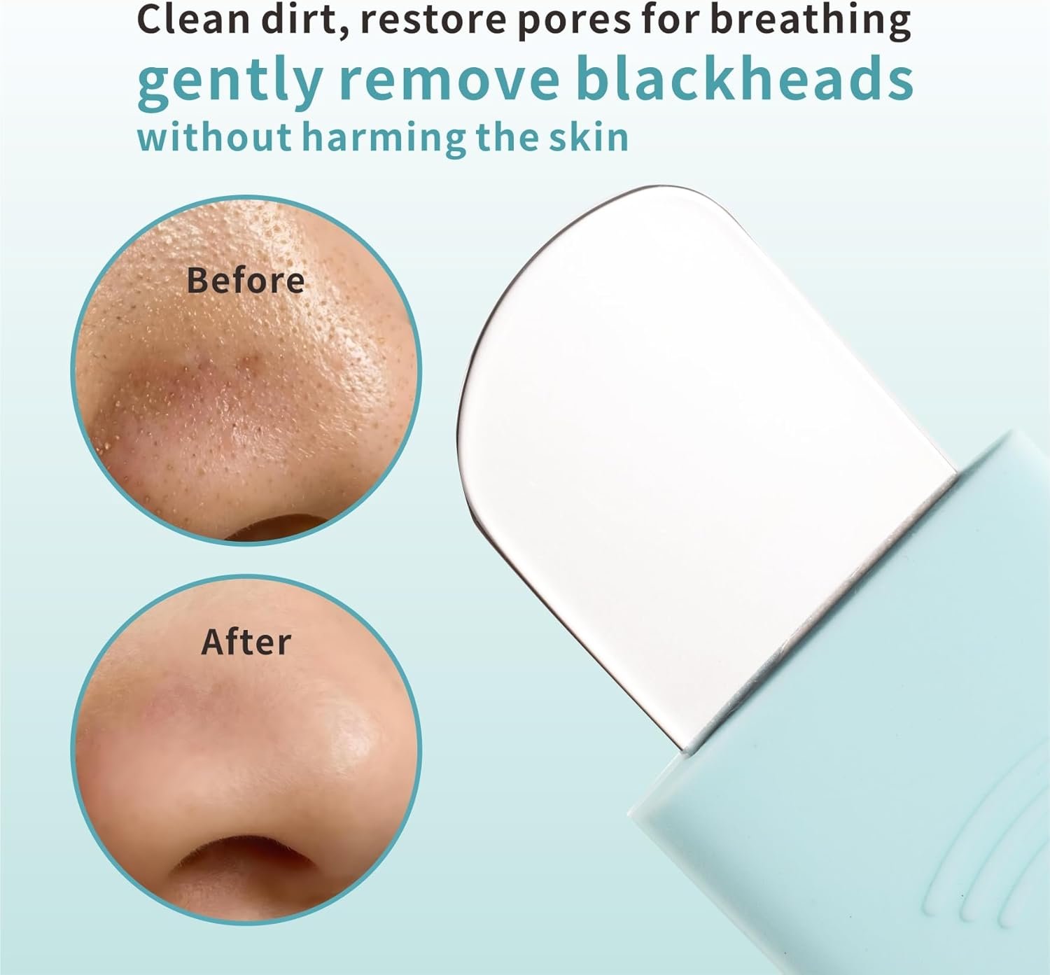 【Black head remover for face and nose】: The silicone blackhead extractor designed 2 different head provides a gentle yet effective way to remove blackheads,whiteheads, dirt, oil and excess sebum. The stainlees steel spatula perfect for tackling stubborn blackheads, especially around the nose, leaving your skin feeling clear, smooth, and refreshed