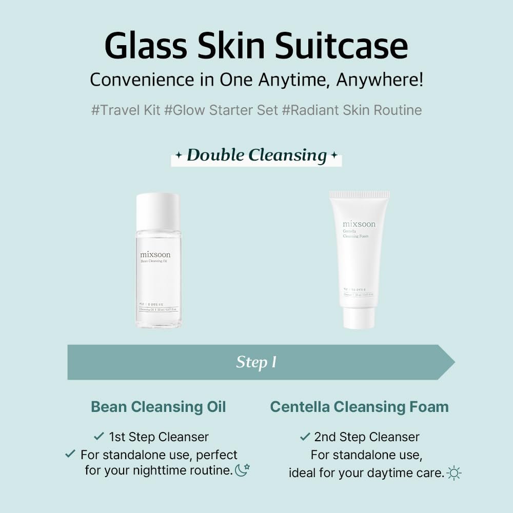 This set includes 1 X Bean Cleansing Oil 20ml/0.67 fl.oz 1 X Soonday Centella Cleansing Foam 20ml/0.67 fl.oz 1 X Bean Essence 50ml/1.6 fl.oz 1 X Bean Cream 15ml/0.50 fl.oz Detailed and accurate information for each product is available on their respective product pages