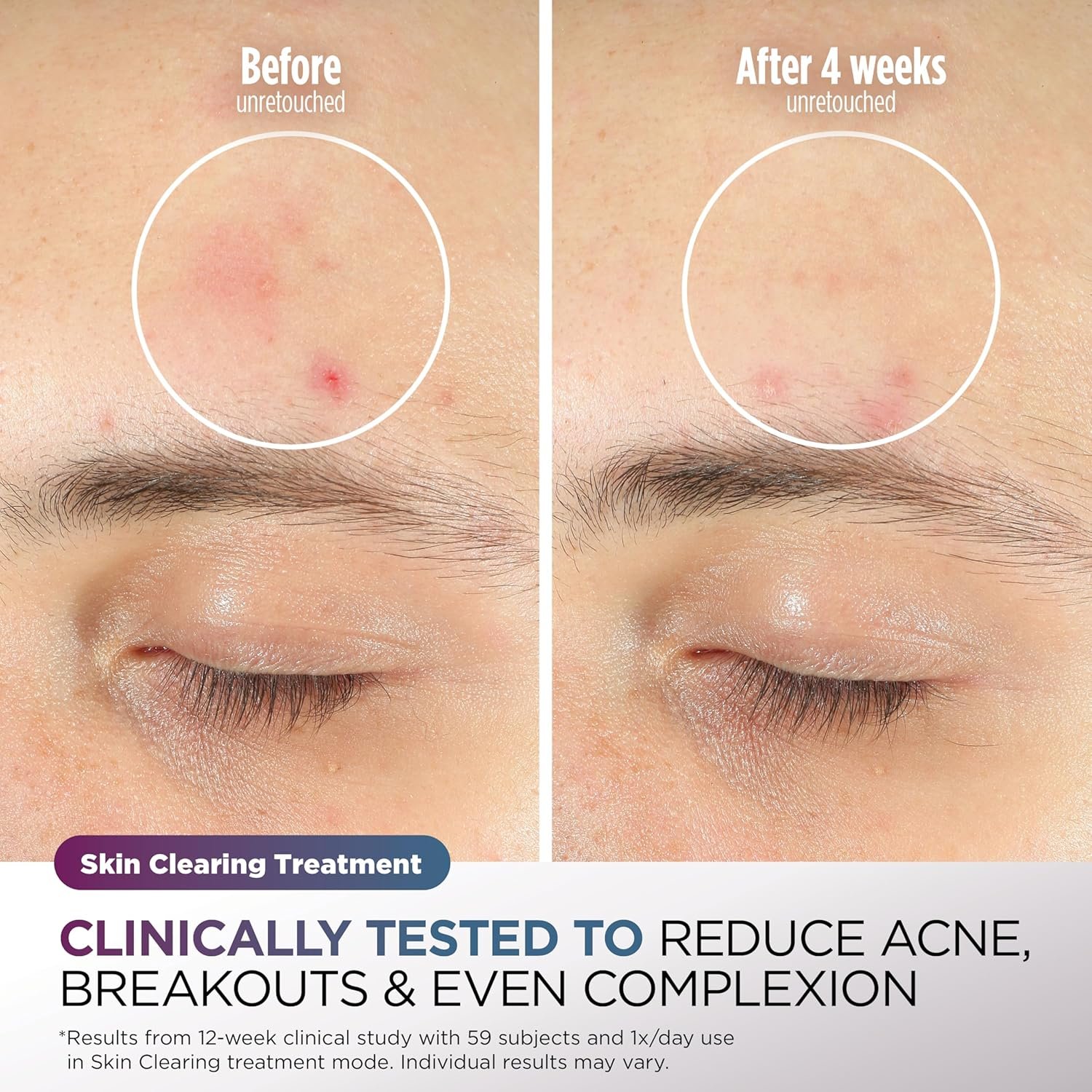 Skin Clearing Treatment: Experience chemical-free acne-clearing with an 8-minute Blue & Infrared and Red LED session to reduce acne & redness for a more even and clear complexion**. **Results from 12-week clinical study with 59 subjects and 1x/day use in Skin Clearing treatment mode. Individual results may vary