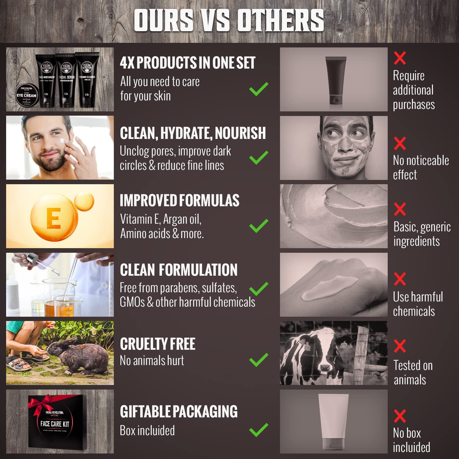 Men’s Skin Care Sets – This men skin care kit includes a mens face wash and moisturizer set (5oz each), a microdermabrasion facial scrub for deep cleaning (5oz) and a nourishing eye cream (1oz). The perfect mens face care kit starter pack!