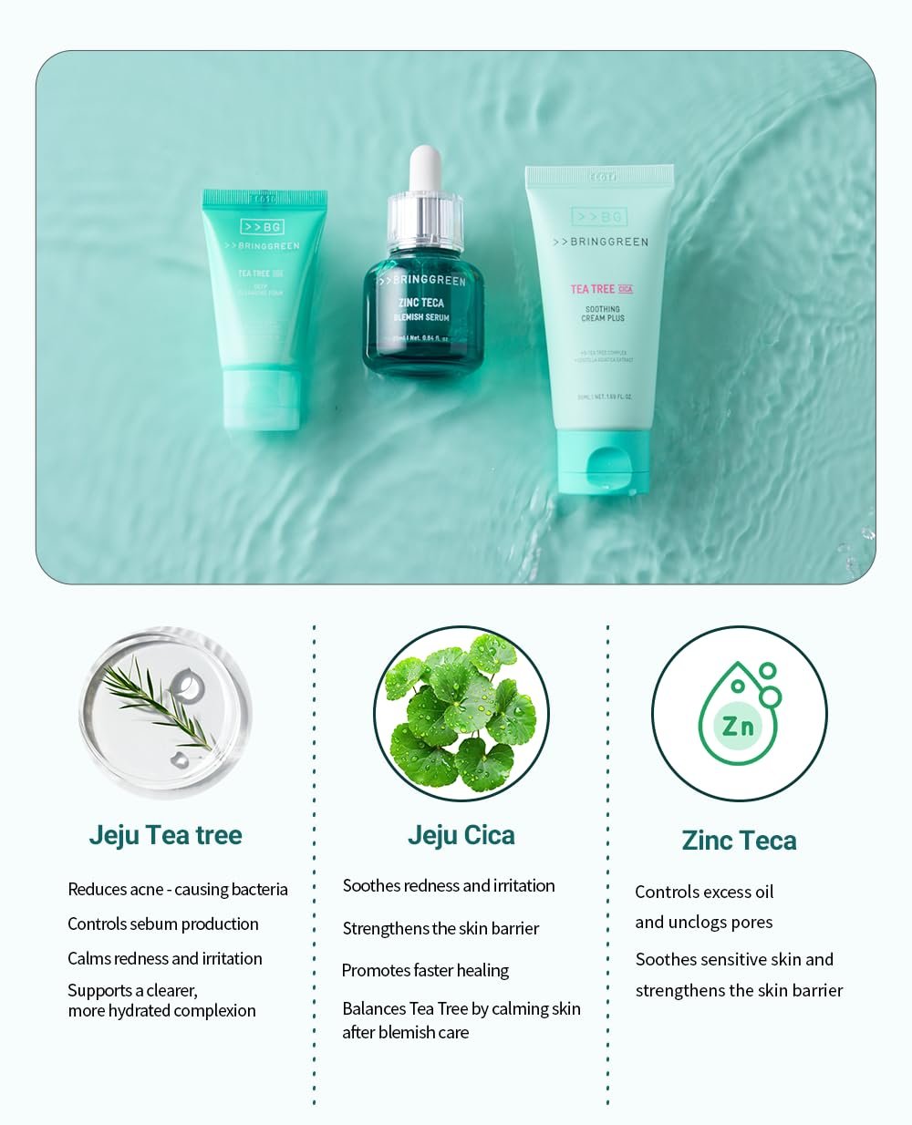FAST & EFFECTIVE ACNE CARE WITH ZINC TECA & TEA TREE – Powered by Zinc Teca and 5x Tea Tree Complex, this set works to calm breakouts, reduce redness, and control excess oil while strengthening the skin barrier for long-term skin health. Perfect for those struggling with sensitive, acne-prone skin looking for visible results.