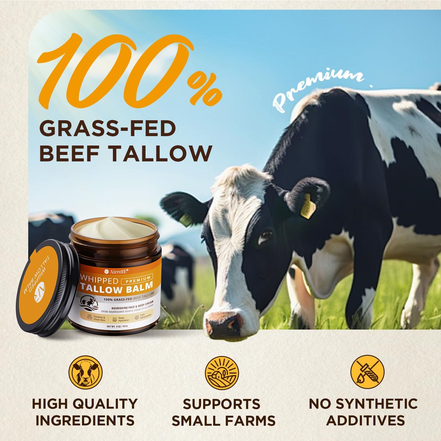 Sustainably Sourced & Natural: We pride ourselves on sourcing our beef tallow from responsibly raised, grass-fed cattle, ensuring the highest quality and environmental sustainability. Feel good about using a product that benefits both your skin and the planet.