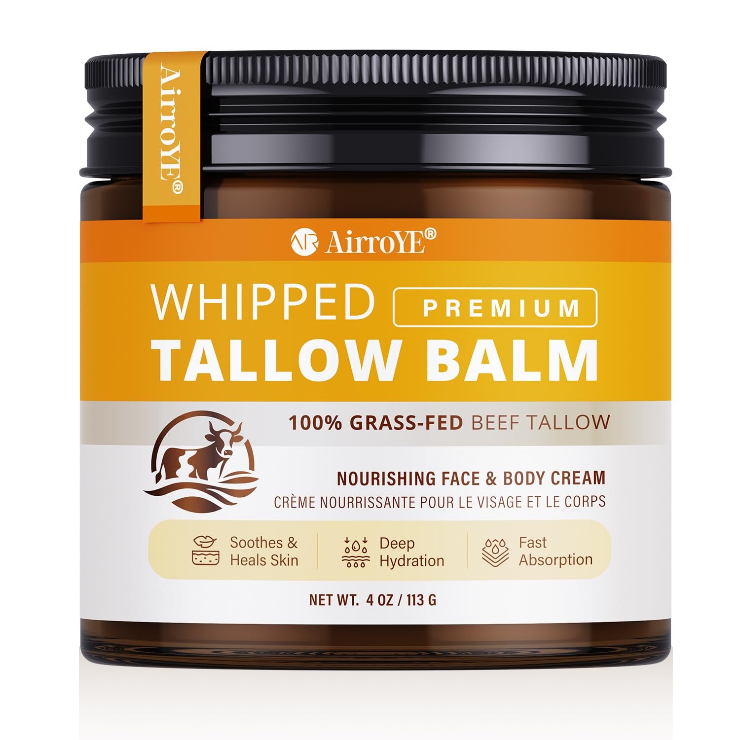 Nutrient-Rich Grass-Fed Beef Tallow: Our whipped tallow moisturizer is made with the finest grass-fed beef tallow, rich in essential vitamins A, D, E, and K, nourishing your skin for a healthier, smoother feel without the use of harsh chemicals.
