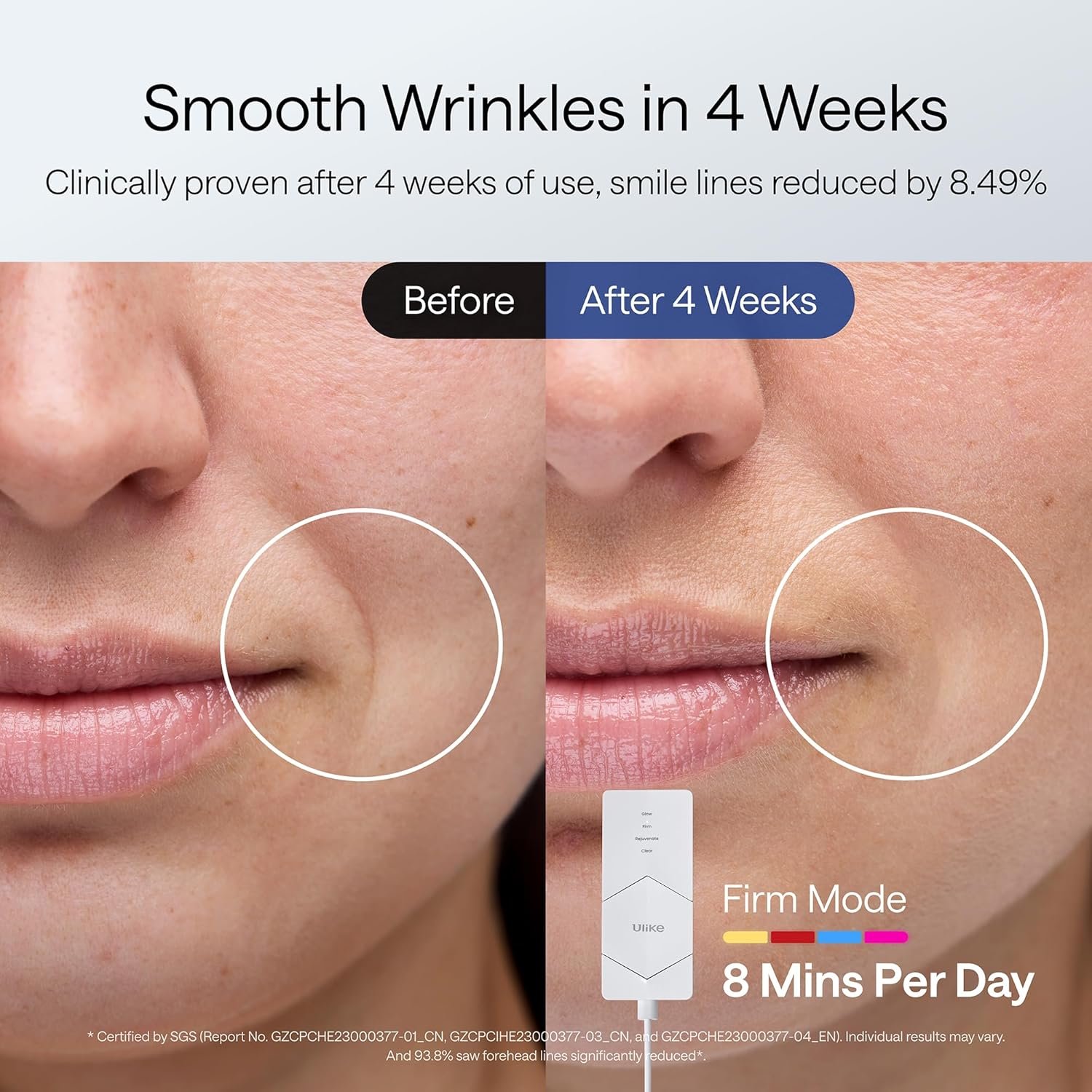 Ulike ReGlow LED Light Therapy Face Mask delivers visible results in just 8 minutes a day. It helps reduce pigmentation and redness in as little as 2 weeks* and smooth fine lines and wrinkles within 4 weeks* of consistent use. Achieve youthful, healthier-looking skin—all from the comfort of home.