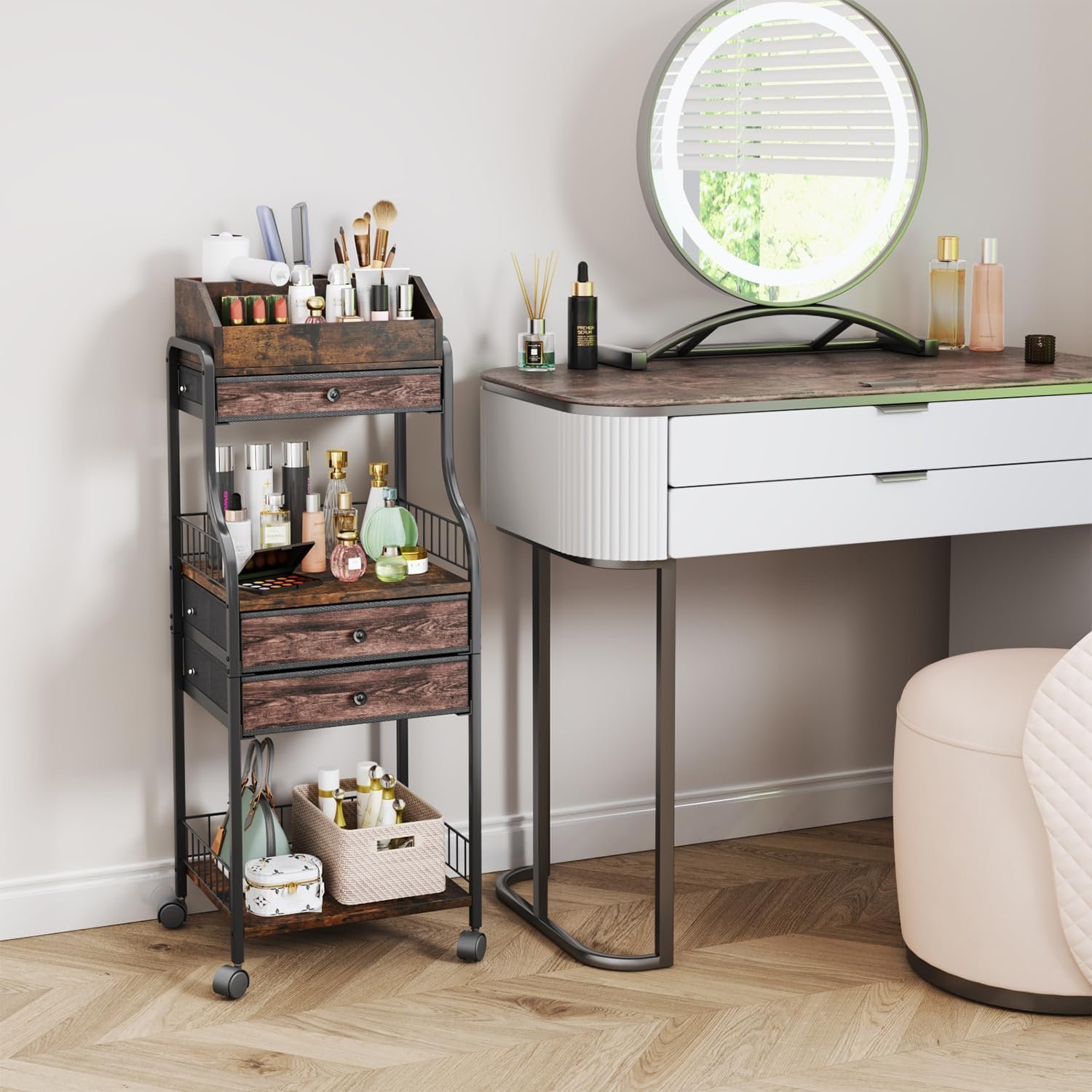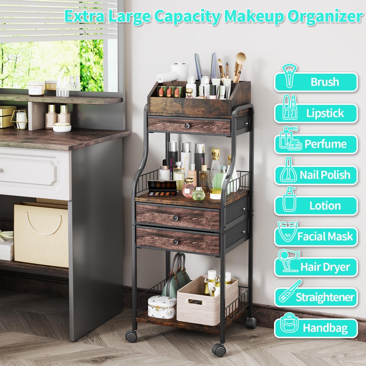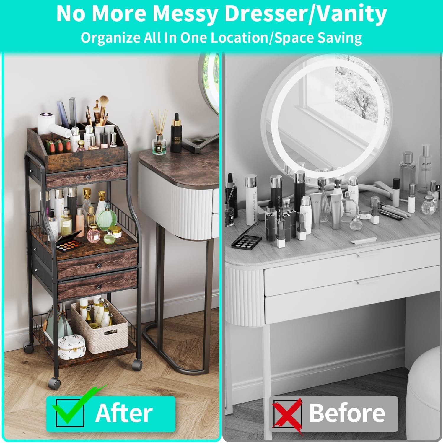 [Safety Railing Design] Our makeup cart with wheels are also designed with railings to prevent your items from easily falling off. Safety railings help organize items on the beauty organizer and prevent them from moving or tipping over, reducing the risk of accidents or damage