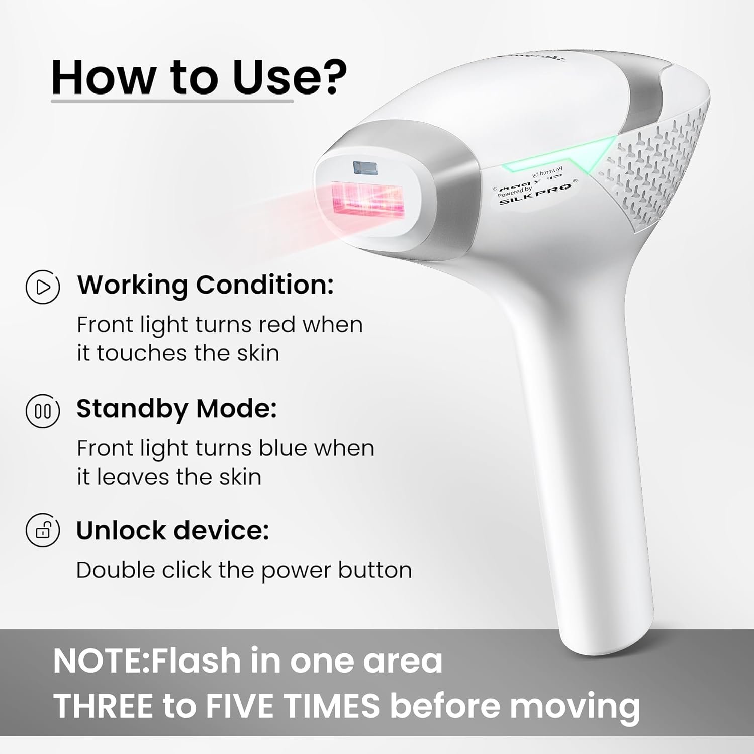 ❄️FAST & EFFORTLESS: Our hair removal offers fast, efficient hair removal with its wide 30*10mm nozzle and rapid rate of up to 161 flashes per minute. Achieve full-body results in just 15 minutes. Plus, the continuous flash feature (Auto Mode) eliminates the need for constant clicking, making your hair removal routine quick and hassle-free.