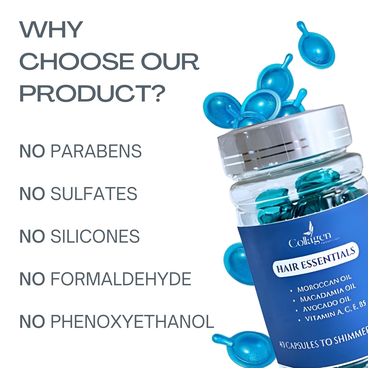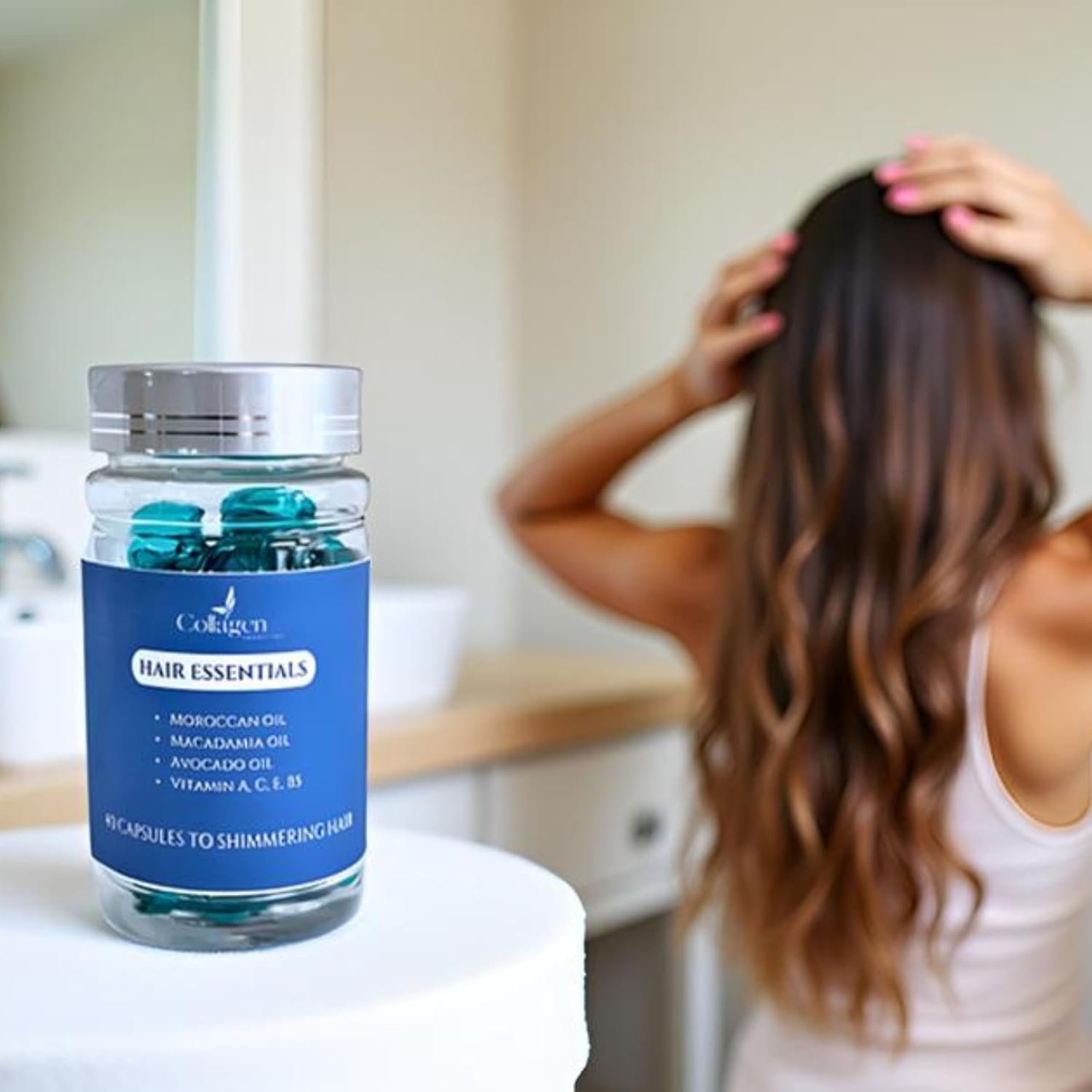 This hair treatment capsule is formulated with a luxurious blend of Moroccan, macadamia, and avocado oils, enriched with Vitamins A, C, E, B5. These capsules are designed to enhance your hair’s natural shine and texture. The convenient no-rinse capsules deliver concentrated nutrients directly to your strands, making it easy to incorporate into your daily routine. Experience the difference of healthier, more manageable hair with this nourishing treatment.