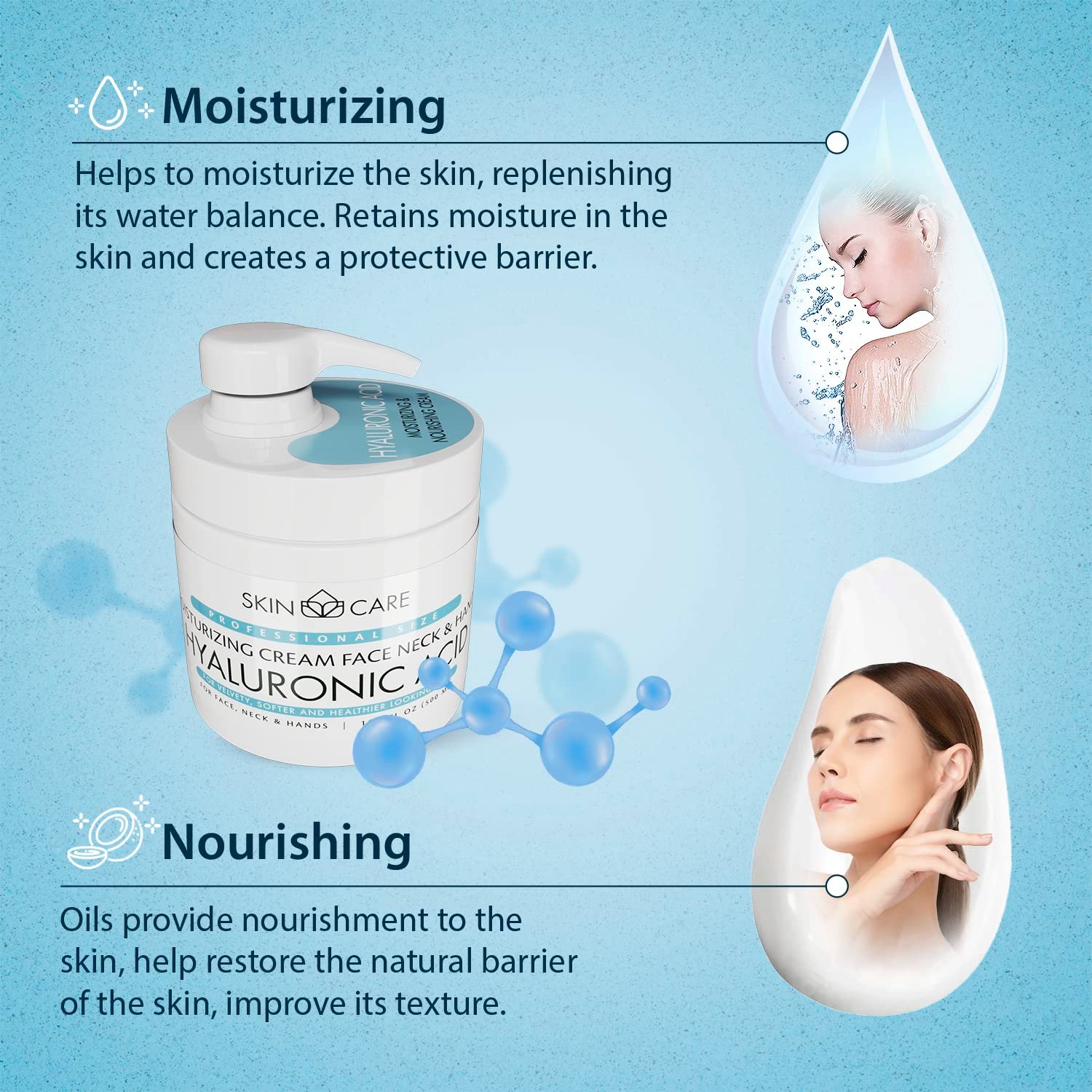 3-in-1 Formula – Hyaluronic Acid face, neck, and hand cream is a versatile skincare solution that saves time and money. Enriched with hyaluronic acid and nourishing ingredients, it deeply moisturizes and revitalizes the skin, leaving it soft, supple, and rejuvenated.