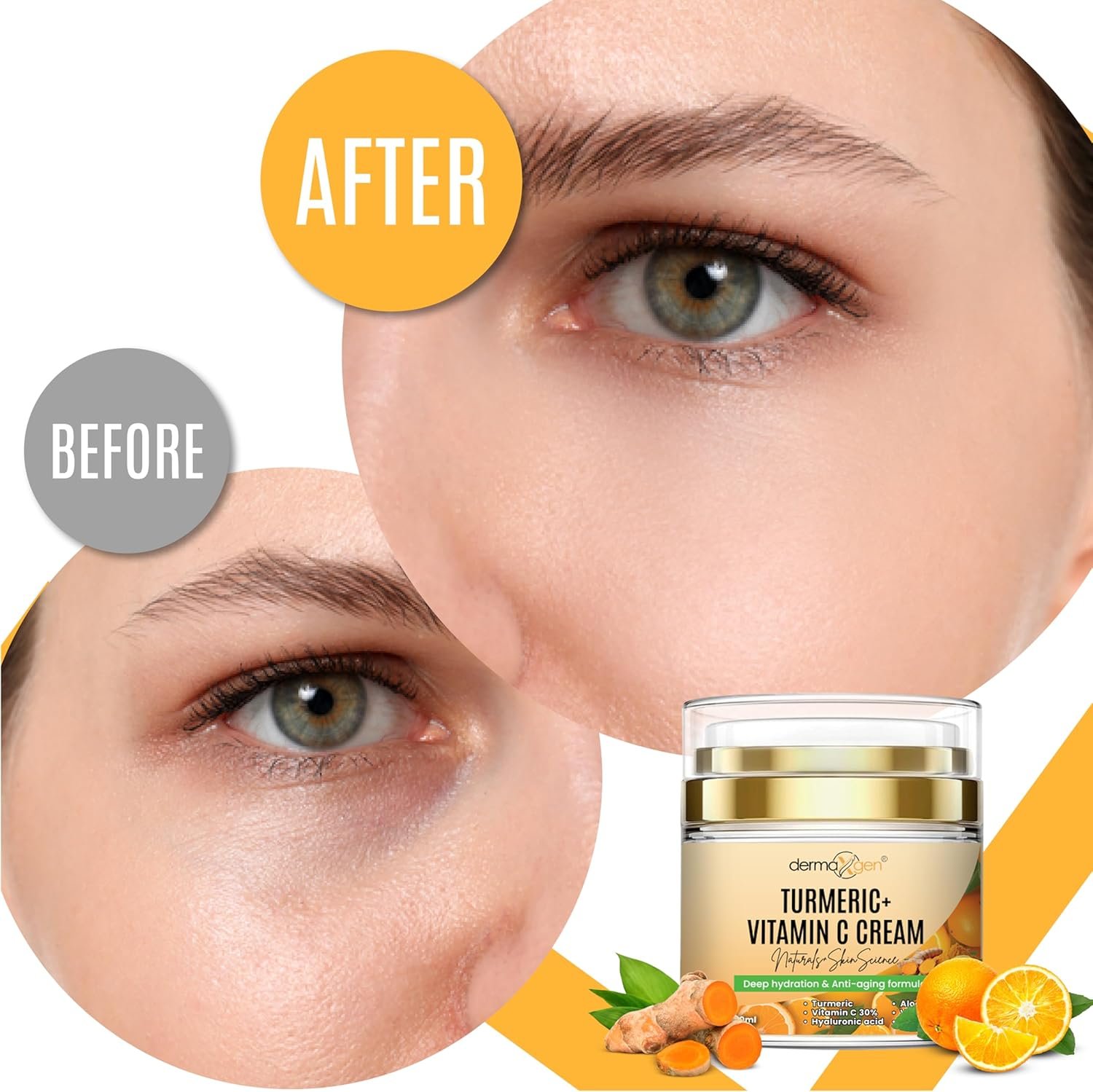 Nature-Powered Skincare: Experience the perfect fusion of science and nature with Dermaxgen’s Vitamin C and Turmeric Face Cream. Crafted with carefully selected botanical ingredients, this formula enhances your skincare routine with a refreshing and nourishing touch. Perfect for those looking to incorporate nature-inspired elements into their daily regimen.