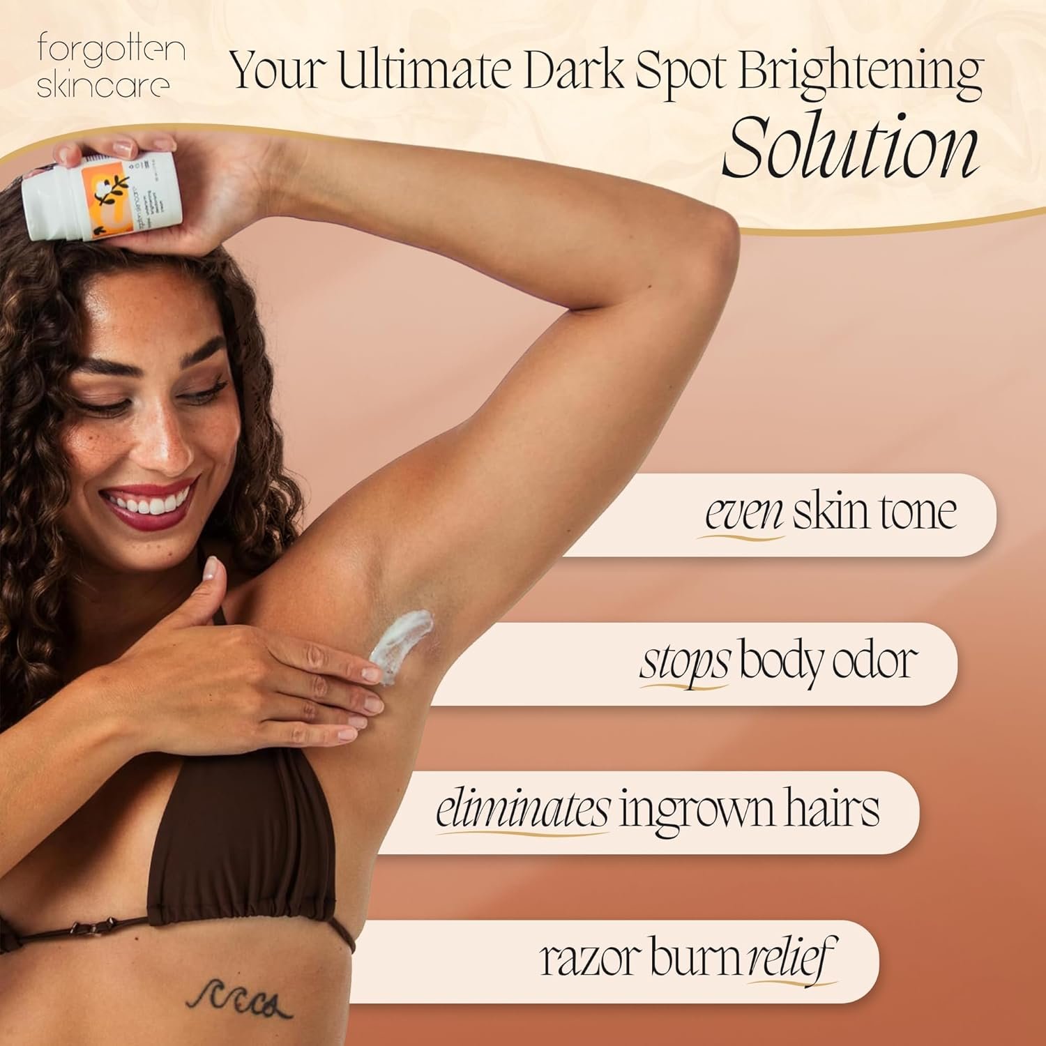 What to expect? Results in 8-12 weeks. Varying factors like how often you shave, what other products you use or your level of underarm hyperpigmentation will impact results. We recommend taking a picture before you start using Forgotten Skincare.