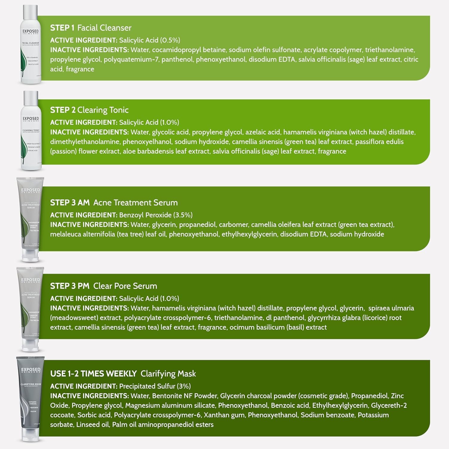 Get Your Confidence Back – Get acne free skin and give your self-esteem a boost. Let Exposed Skin Care’s acne treatment kit help you achieve the clean and healthy-looking skin you deserve.