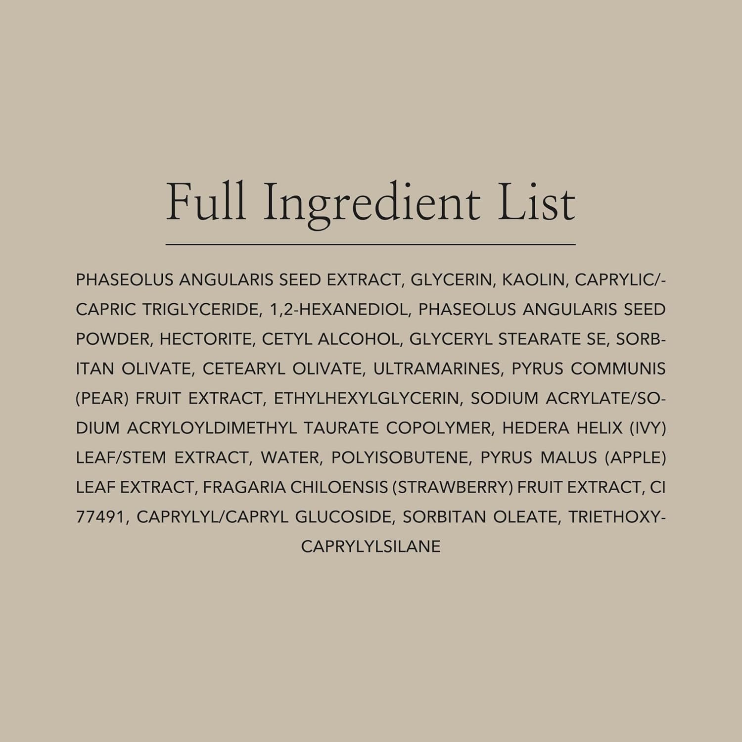 [Kaolin] Kaolin absorbs sebum, and red bean extract and red bean powder help with exfoliating and clear skin texture.
