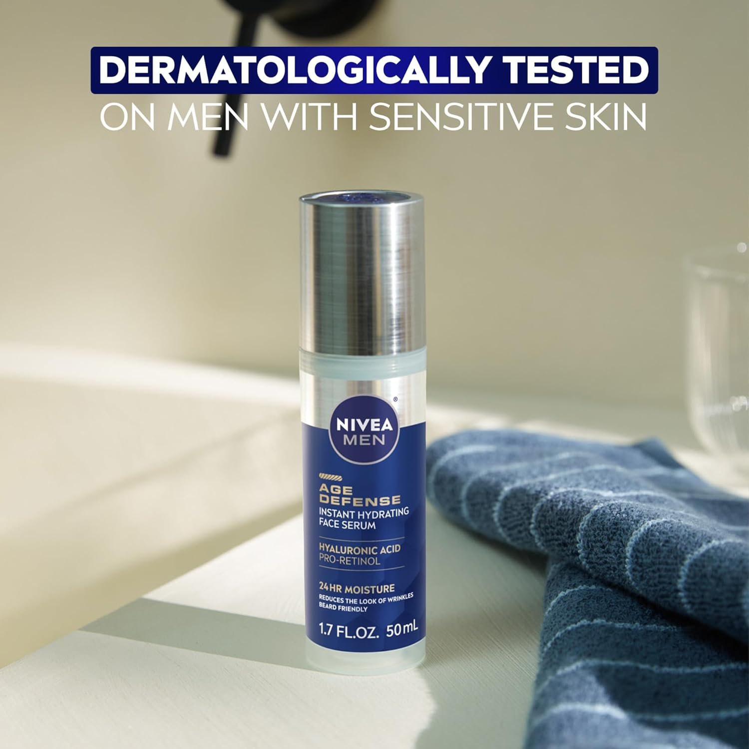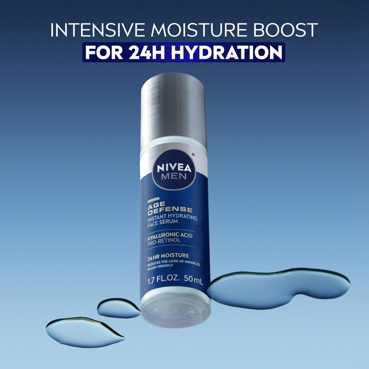 INCLUDES: One 1.7 fluid ounce (50 mL) bottle of NIVEA MEN Age Defense Instant Hydrating Face Serum