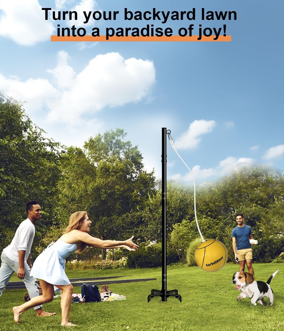 Durable & Serviceable: Heavy-duty steel with black lacquer spraying ensure this tether balls and rope set with pole rust-proof and wear-proof, no fear of sunshine of rains. Our tetherball game set is an ideal outdoor play activity, such as in the backyard, at the park, at the beach, an outdoor party, a school sports day, pet exercise or family fun and so on.