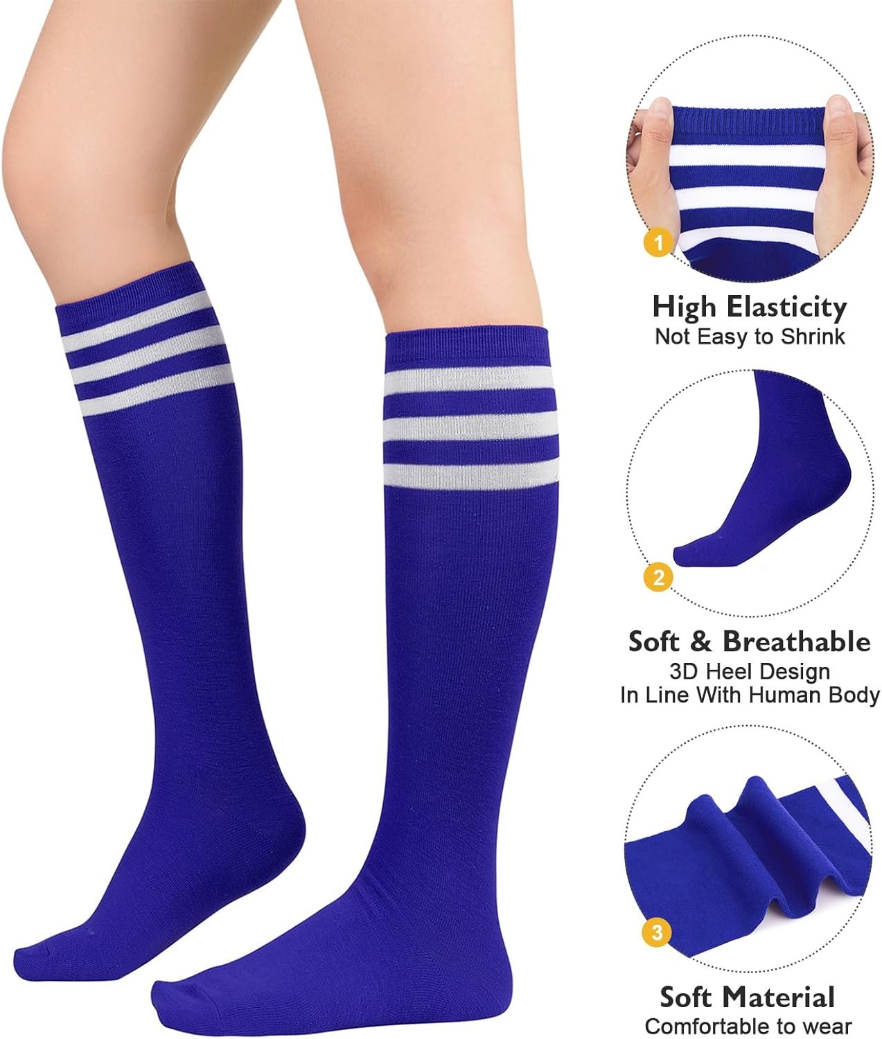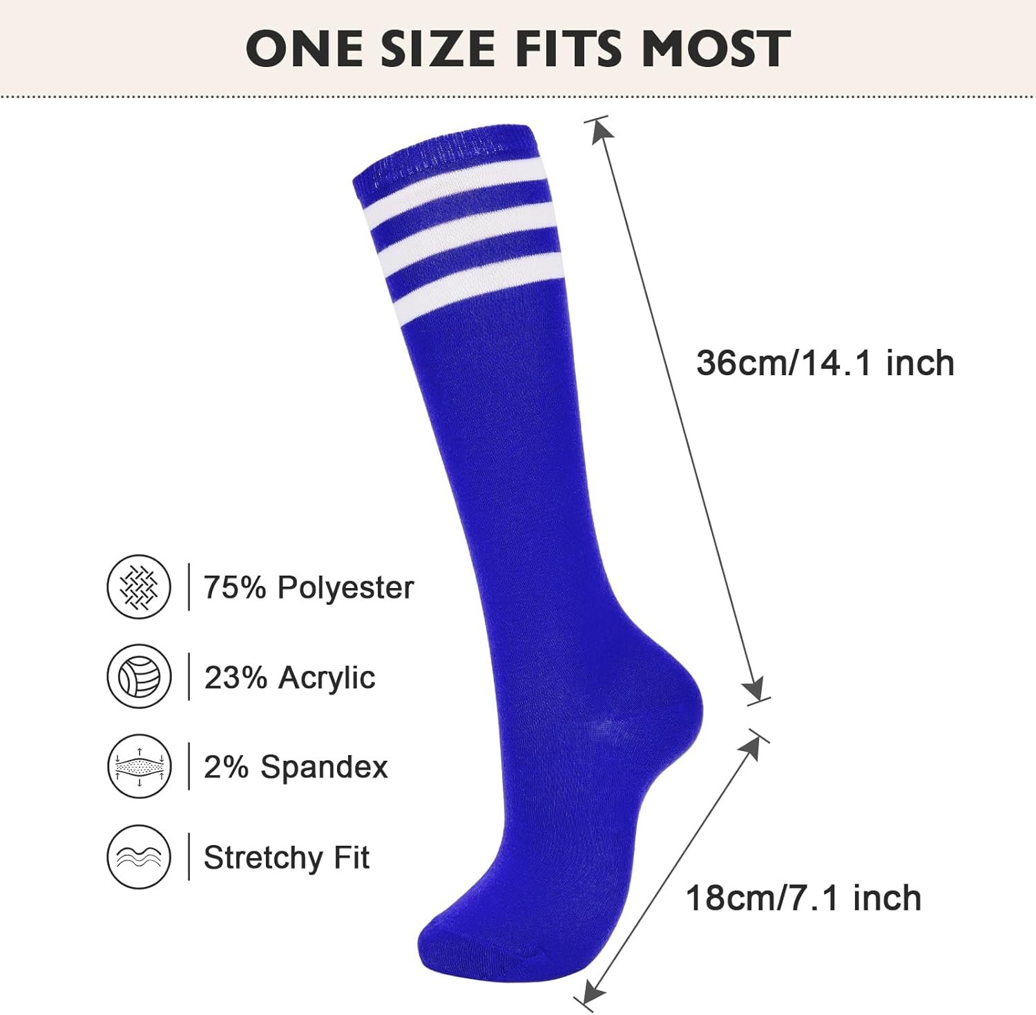Customers find these athletic socks comfortable, soft, and well-fitting, with one noting they work well on wide legs. They receive positive feedback for their quality, appearance, and color, with one customer mentioning they’re perfect for school spirit day. The socks stay in place during wear, and customers like their appearance, with one describing them as a sexy outfit accessory. The material thickness receives mixed reviews, with several customers noting they are very thin.
