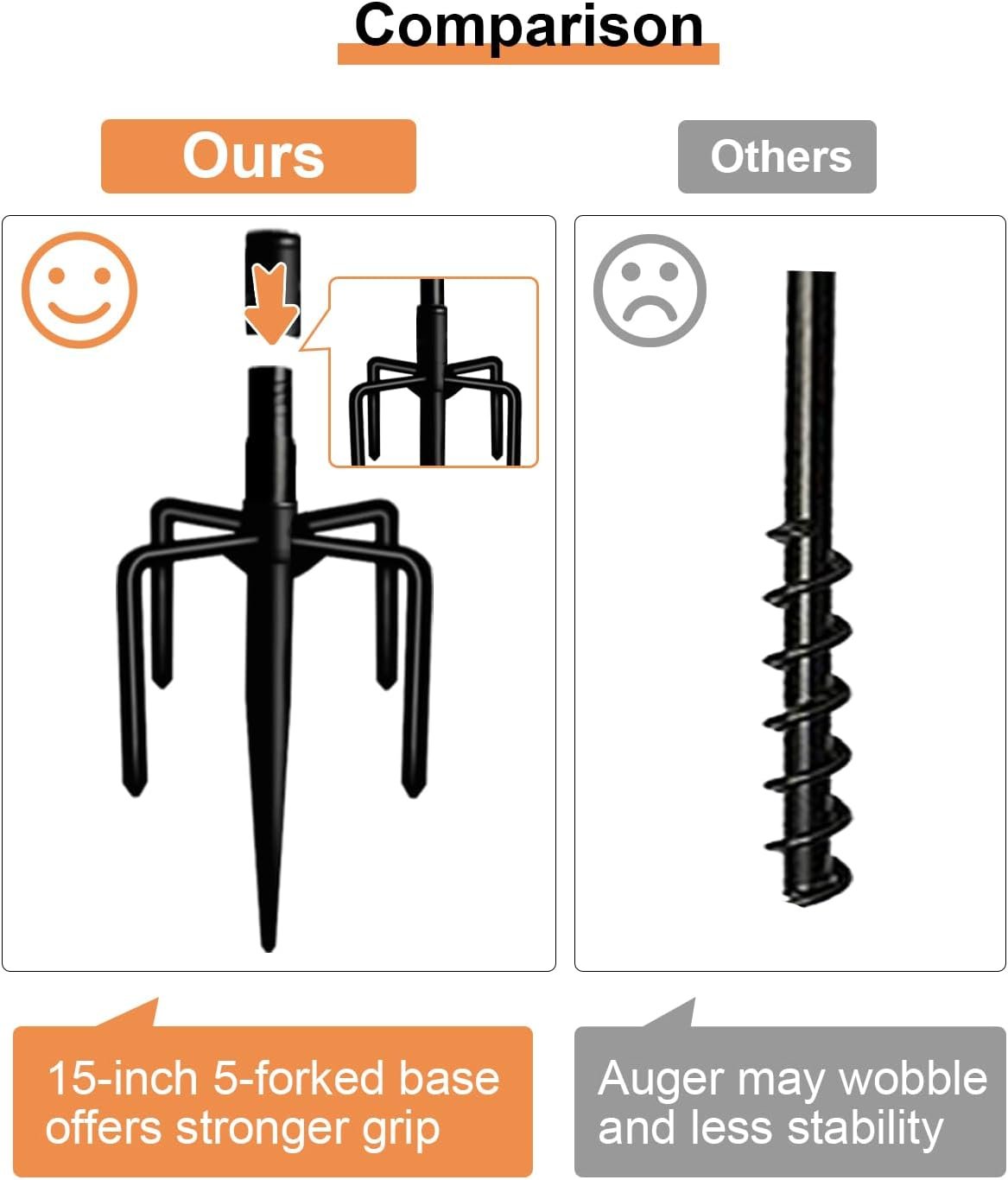 Please make sure each part of the pole is completely tightened. Please insert the fork end into the ground completely to finish installment. We don’t recommend putting the pole into soft moist soil, which may cause the pole to tip over or bend down.