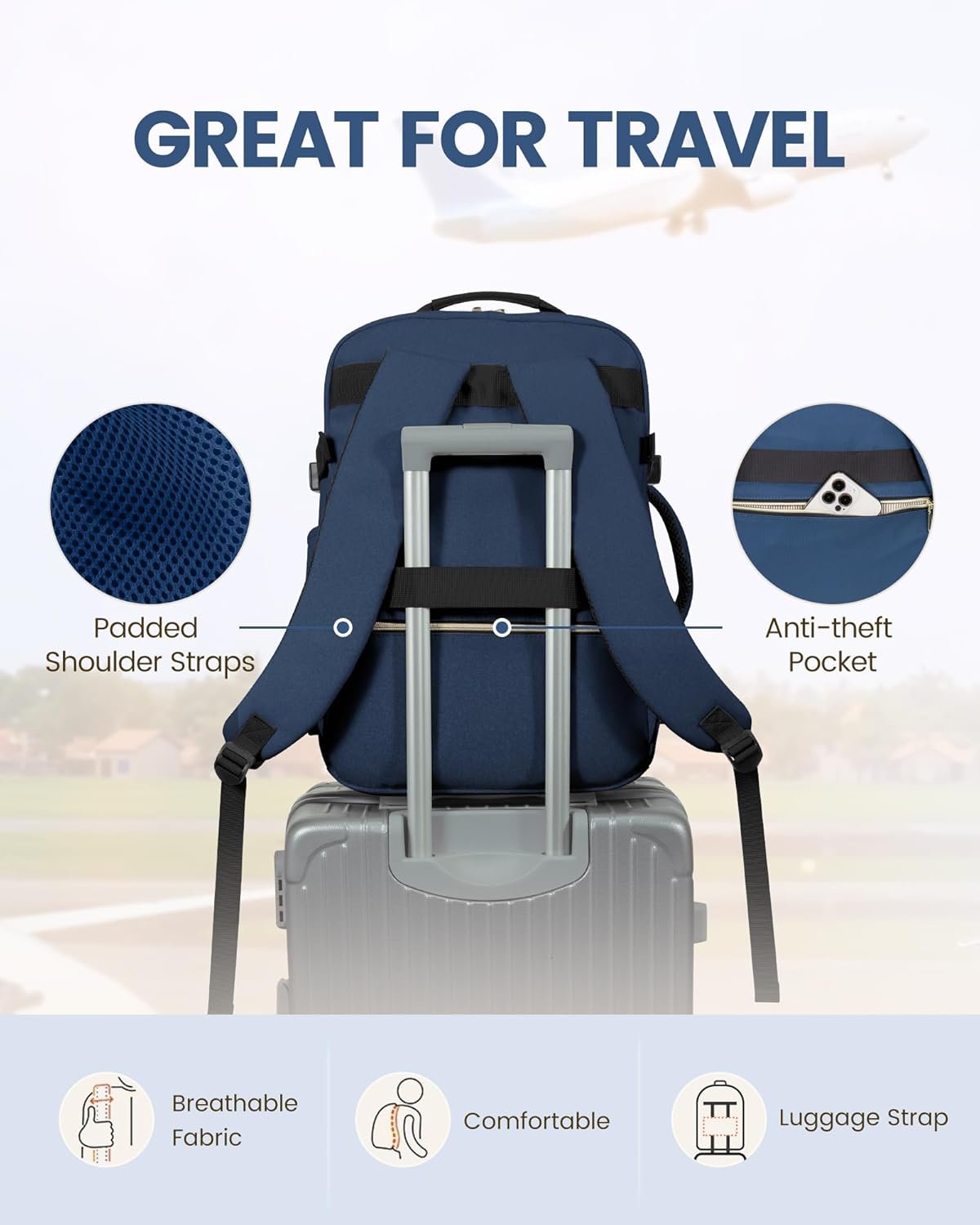 ✈【Comfortable and Durable】: Our carry on backpack flight approved is built to last, with strong metal double-way YKK zippers and reinforced stitching. The high-thickness breathable sponge mesh shoulder straps reduce shoulder pressure, making it feel lighter and cooler. It’s perfect for use as a weekender backpack, hiking backpack, camping backpack, business backpack, or casual daypack.
