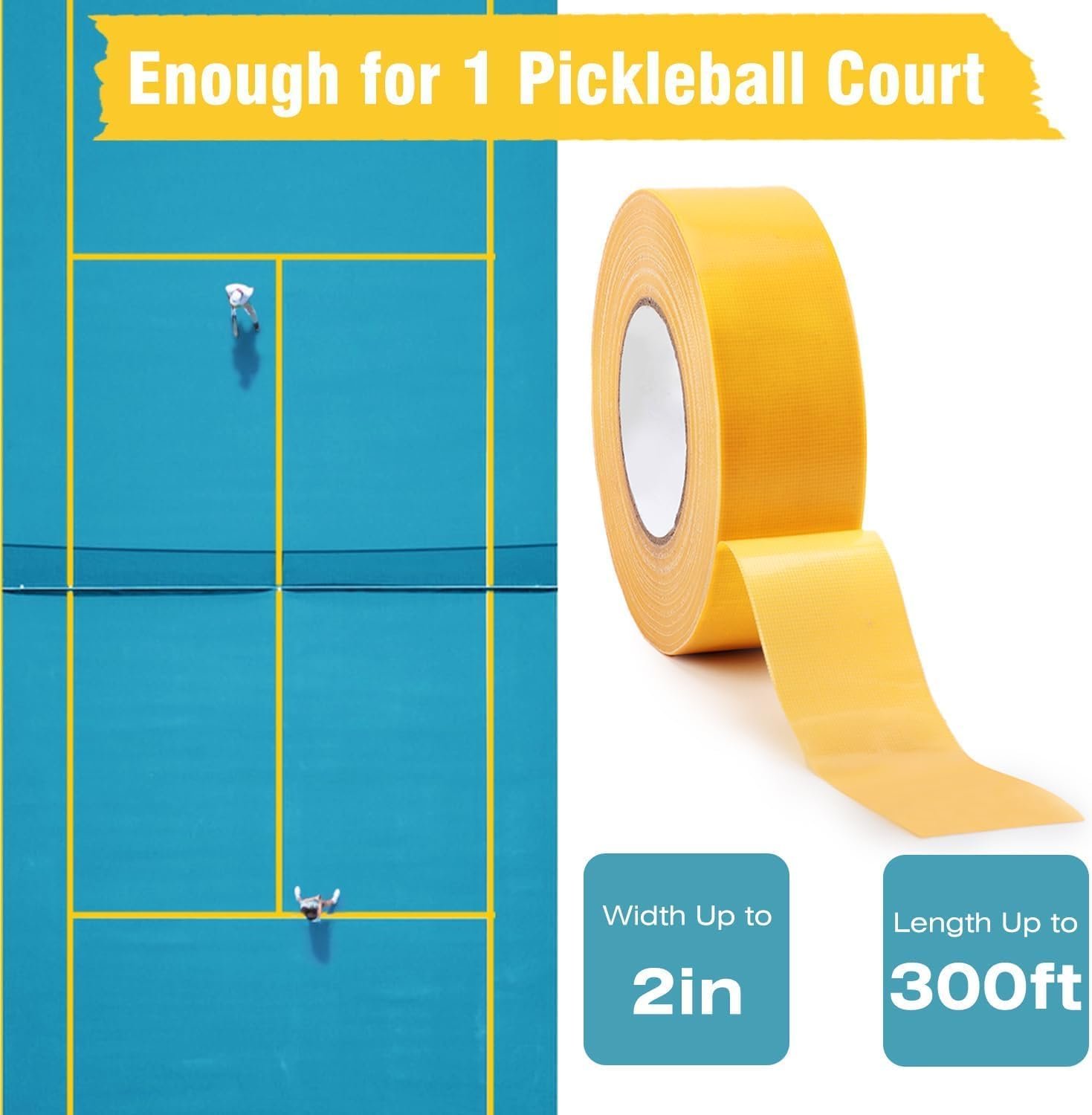 [Excellent Value for Money] This cloth tape comes in a roll that is 230 feet long and 2 inches wide, providing ample tape to line your entire pickleball court. Don’t Get Stuck Deciding – Grab your great value Multi Purpose Tape Today!