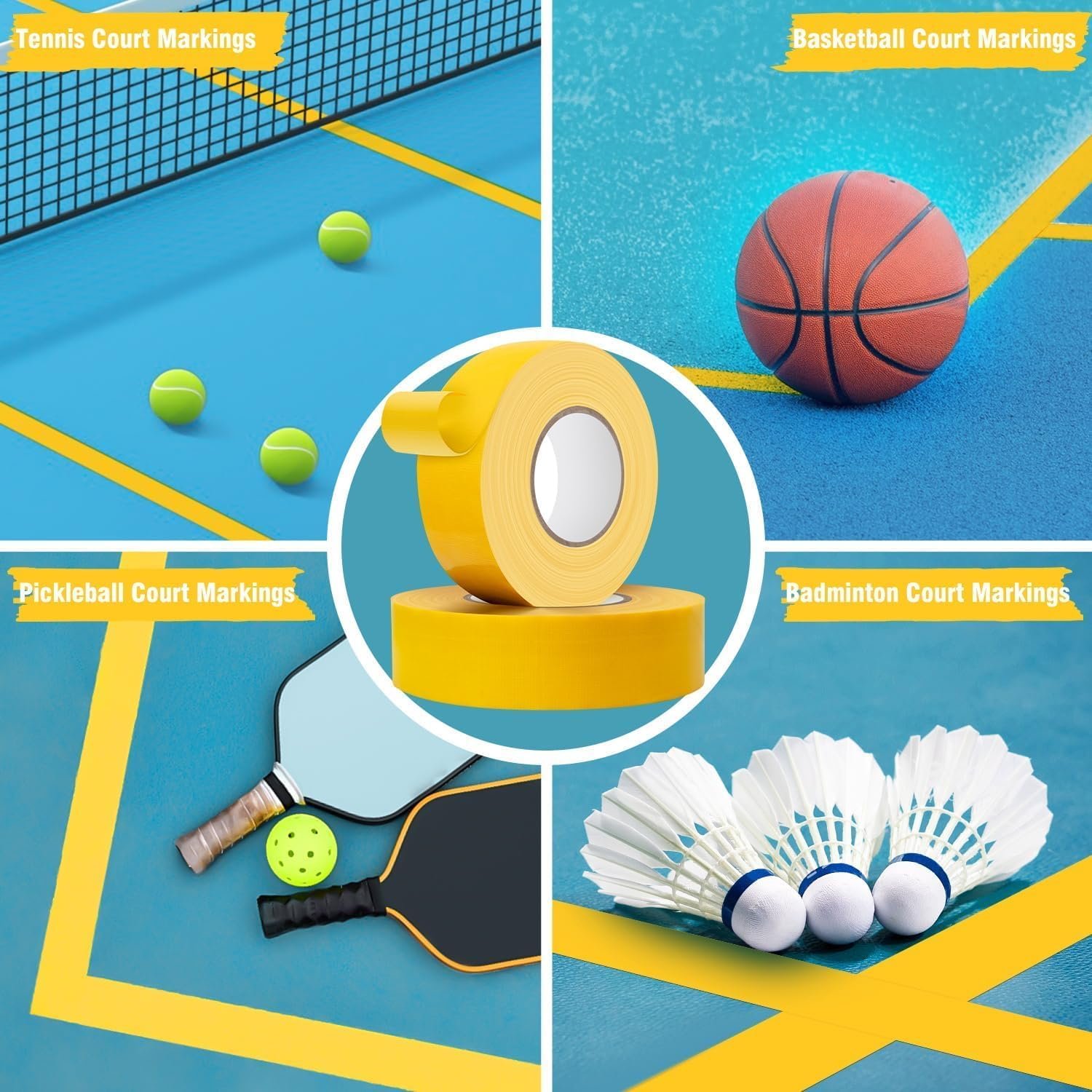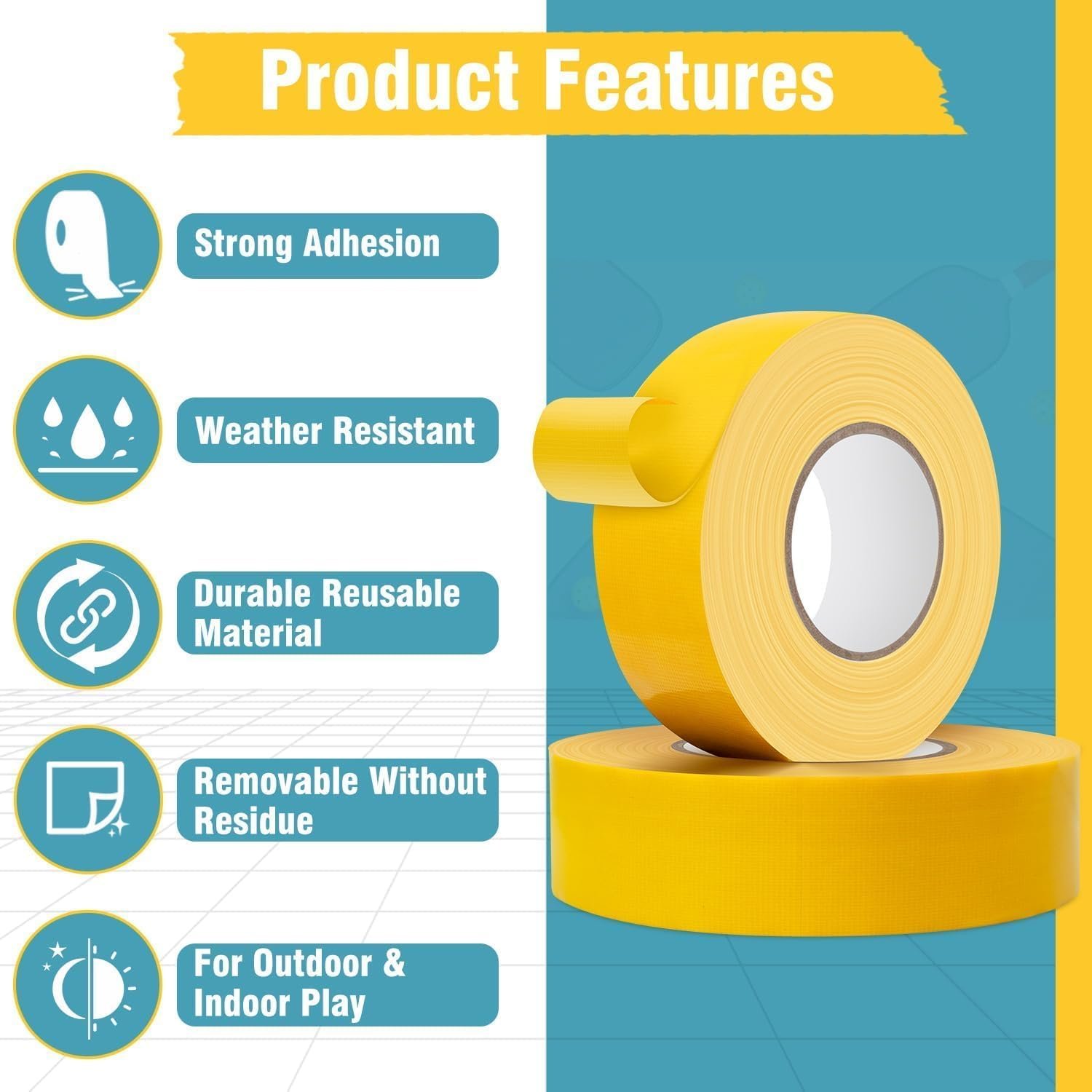 [Multifunctional] This super strong tape is great for marking floors in a variety of locations, including hardwood, vinyl, rubber and gym floors. It can be used in gyms, homes, restaurants, businesses and more to meet all your spacing needs. You can easily define any space with this tape.