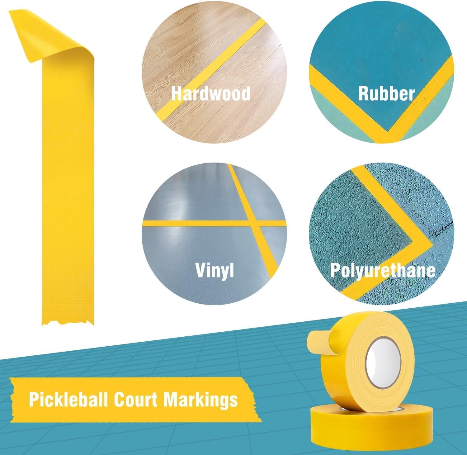 [Ultra-durable] Define any space quickly and easily with this floor marking vinyl tape. Our pickleball court tape is tough enough to adhere to any floor or hard surface and remain in place. It can withstand high foot traffic and equipment, so you can depend on this floor tape to keep your areas spaced and marked.