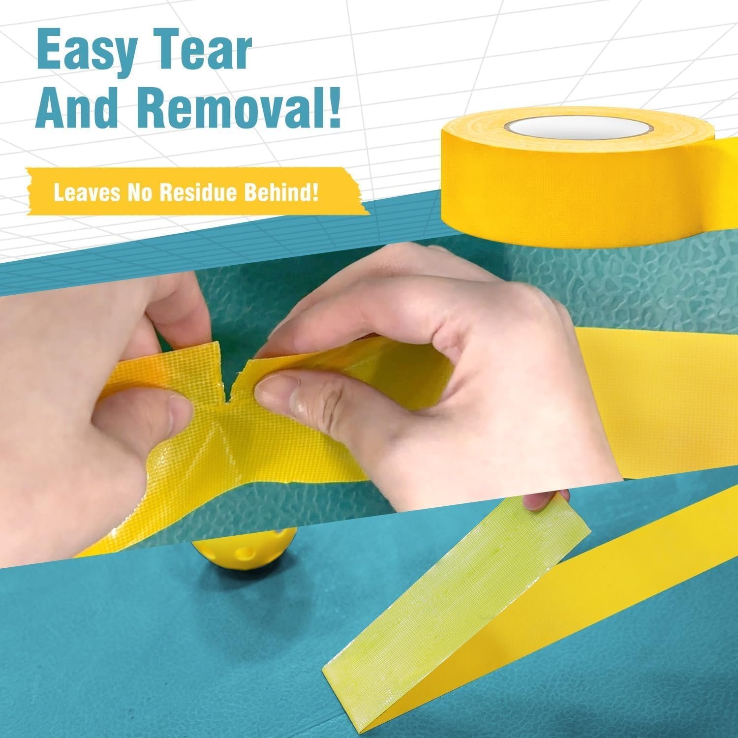 [Easy to use] This tape makes creating straight lines a breeze. It is also easy to remove, and will not scuff floors or leave any residue behind – just peel it away and enjoy clean floors!