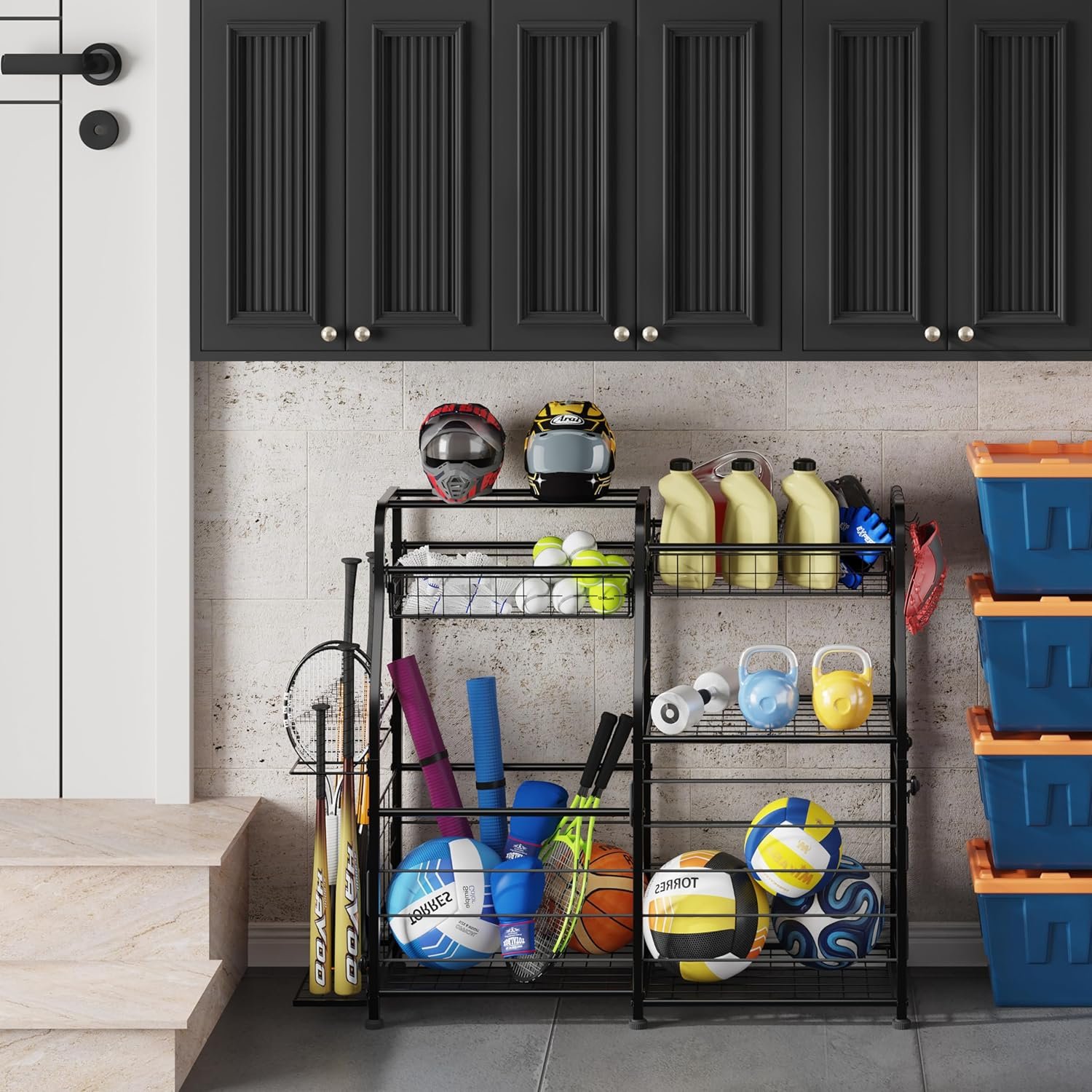 EASY TO ASSEMBLE: The sports equipment organizer comes with clear instruction guide to help you put it together. Step by step guide for effortless installation to help storage sports equipment easily and quickly.