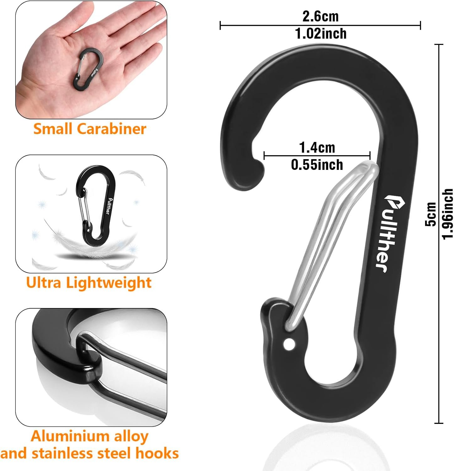 2.LOW WEIGHT AND RELIABLE: Each small carabiner weighs only 5 grams and can withstand a force of up to 30 kg. Mainly used for hanging fishing tackle or hanging household items, perfect for camping, hiking and backpacking to attach water bottles, hiking poles, etc. to your backpack.